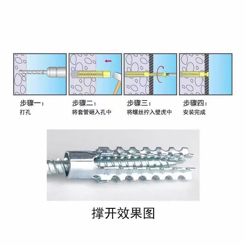 卸売り金属膨張管ギザギザ軽量鋼クリスマスツリー膨張管6MM 8MM鉄膨張管ねじセット