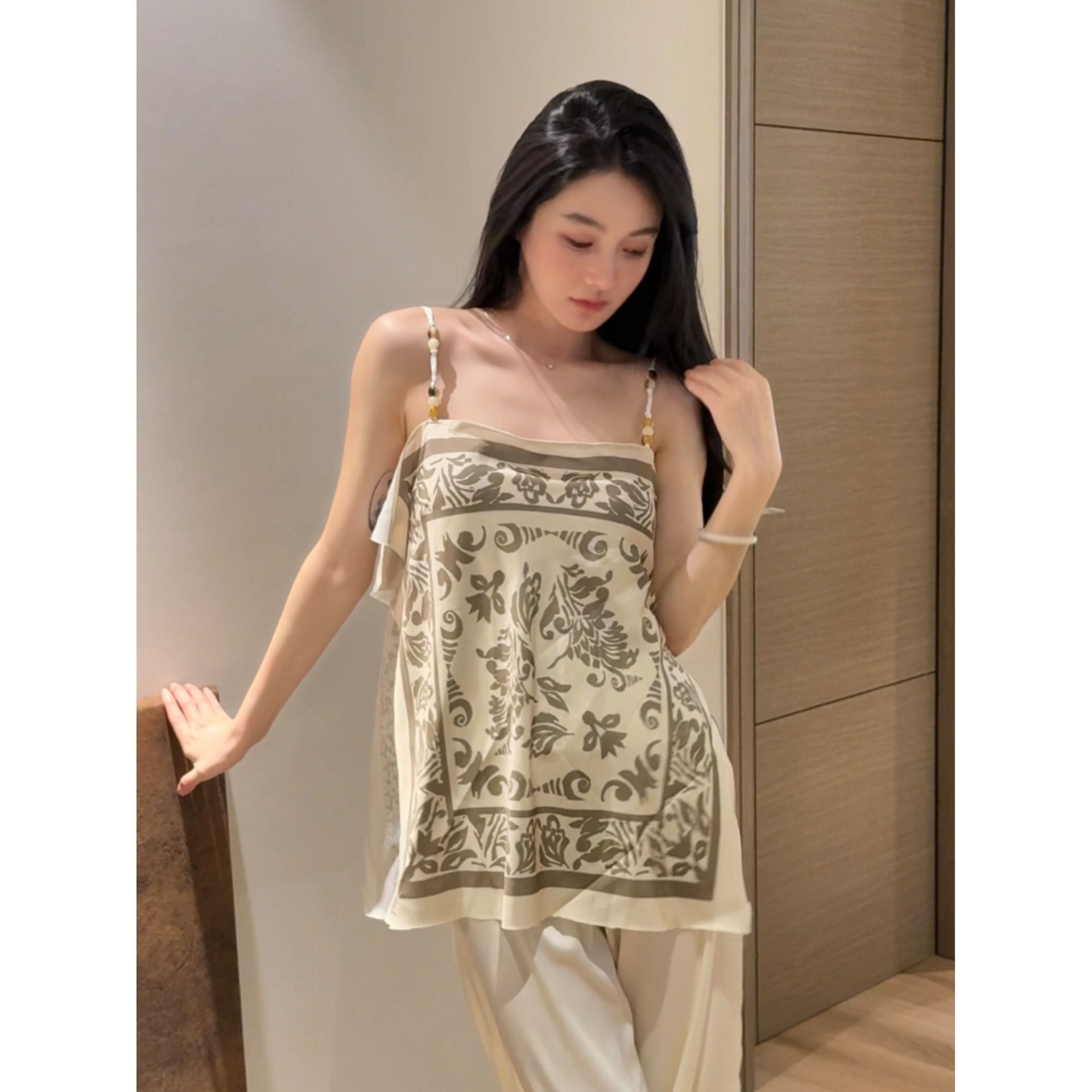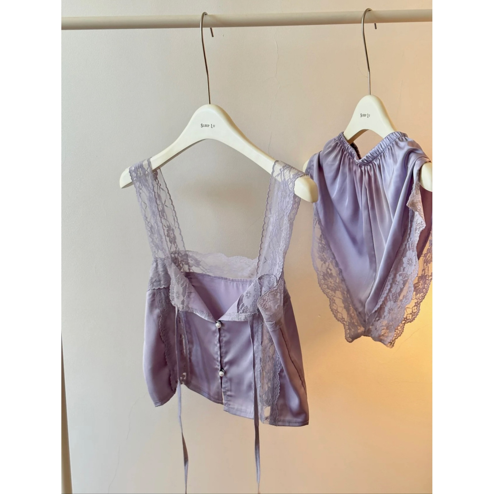 SLEEP Lu 正規品 『金光の静かな空間』気質オールドマネースタイル ミニマリストサスペンダー アセテート ホームウェアセット