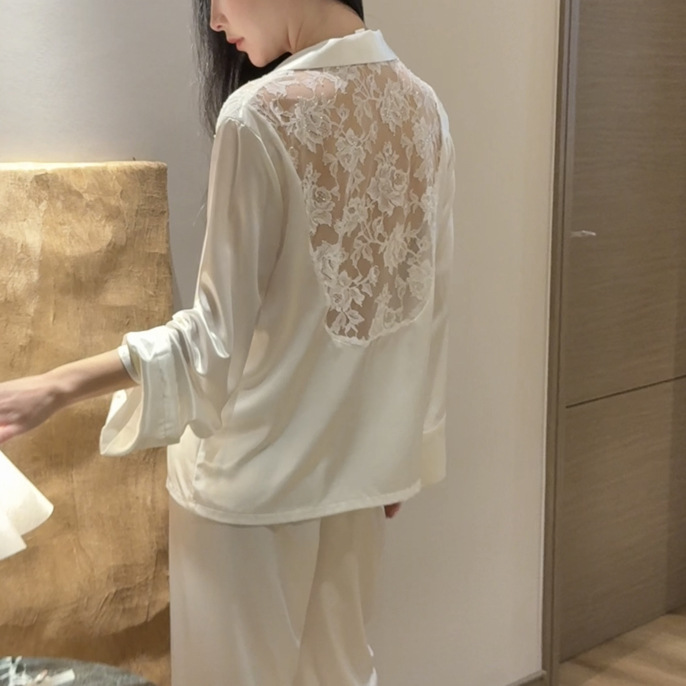 〈月光罗曼史〉法式高级感纯欲蕾丝美背气质长袖长裤家居服套装