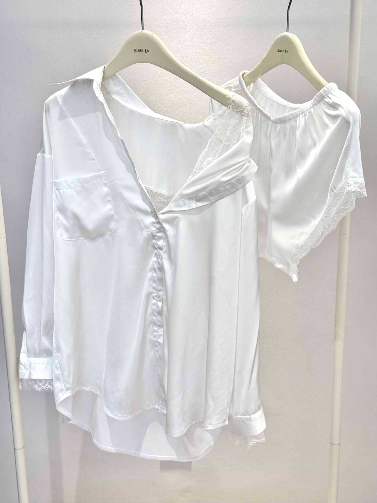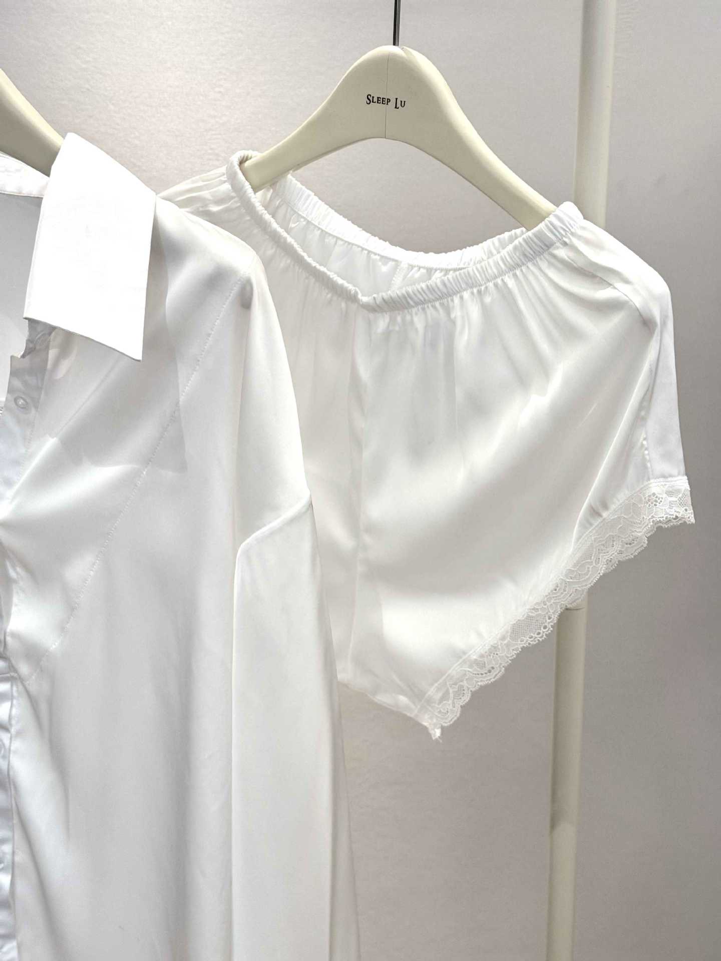 SLEEP LU正規品「白い恋人」シンプルフェイクツーピースレースシャツショーツホームウェア2点セット