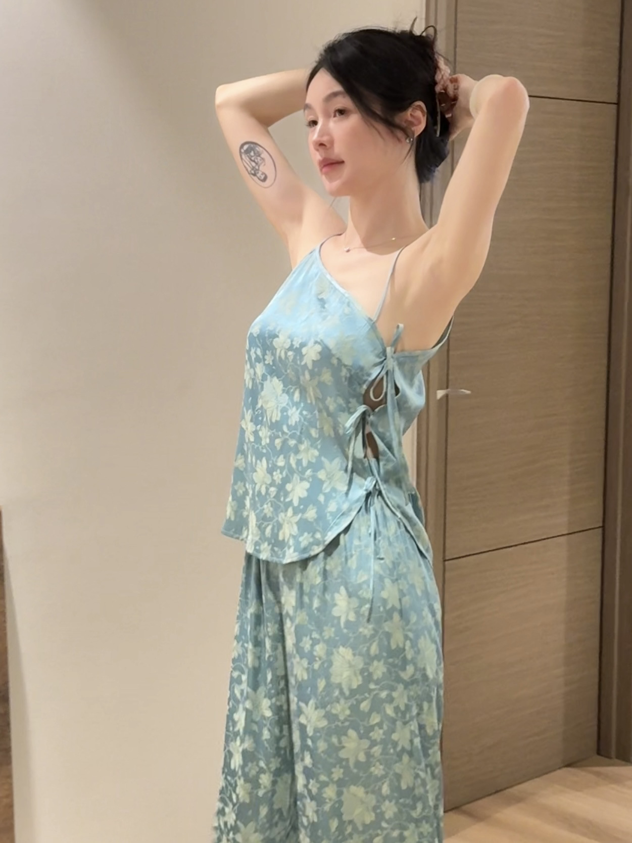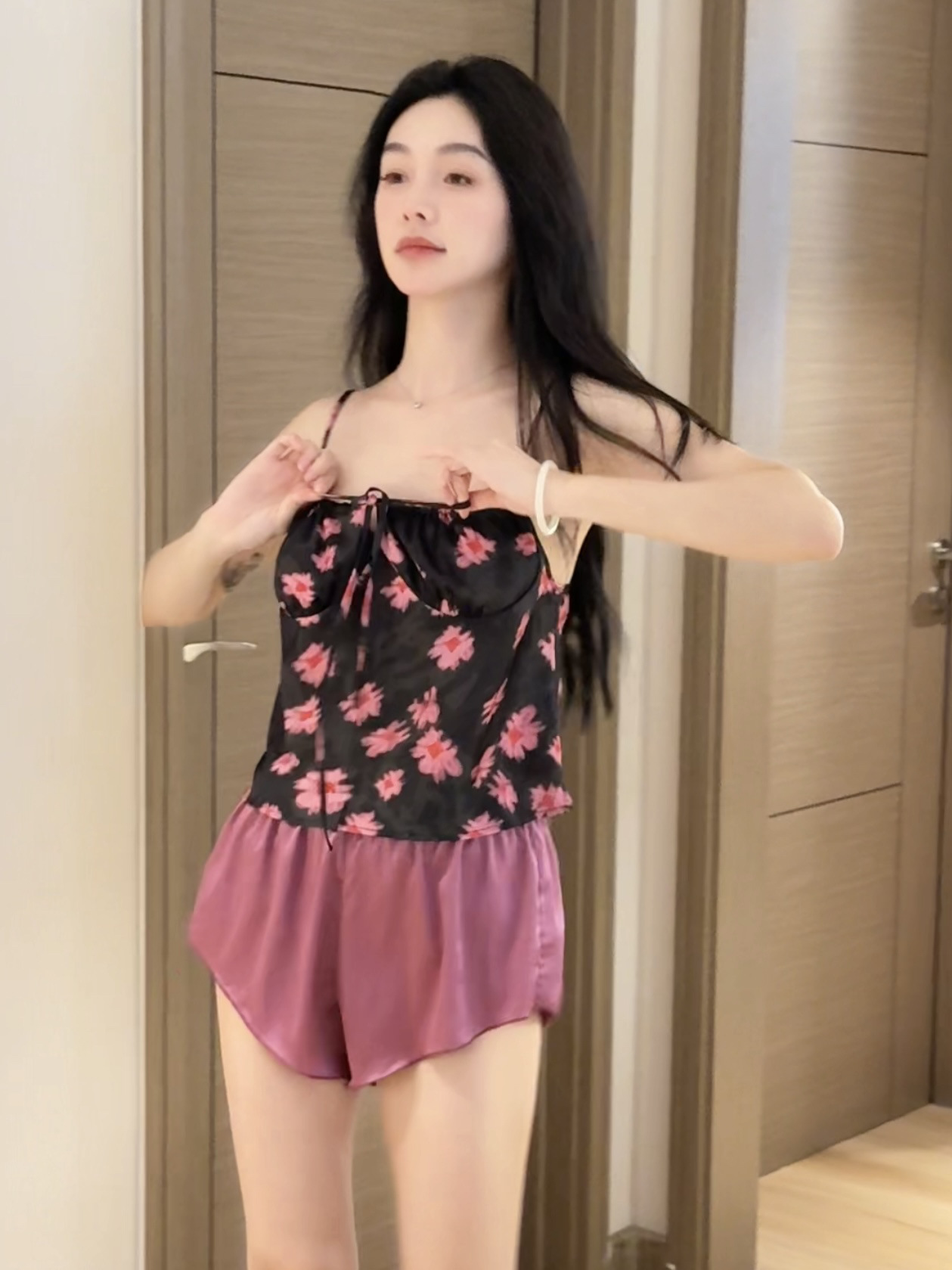 〈弗朗明戈〉法式复古浪漫碎花吊带短裤家居服套装