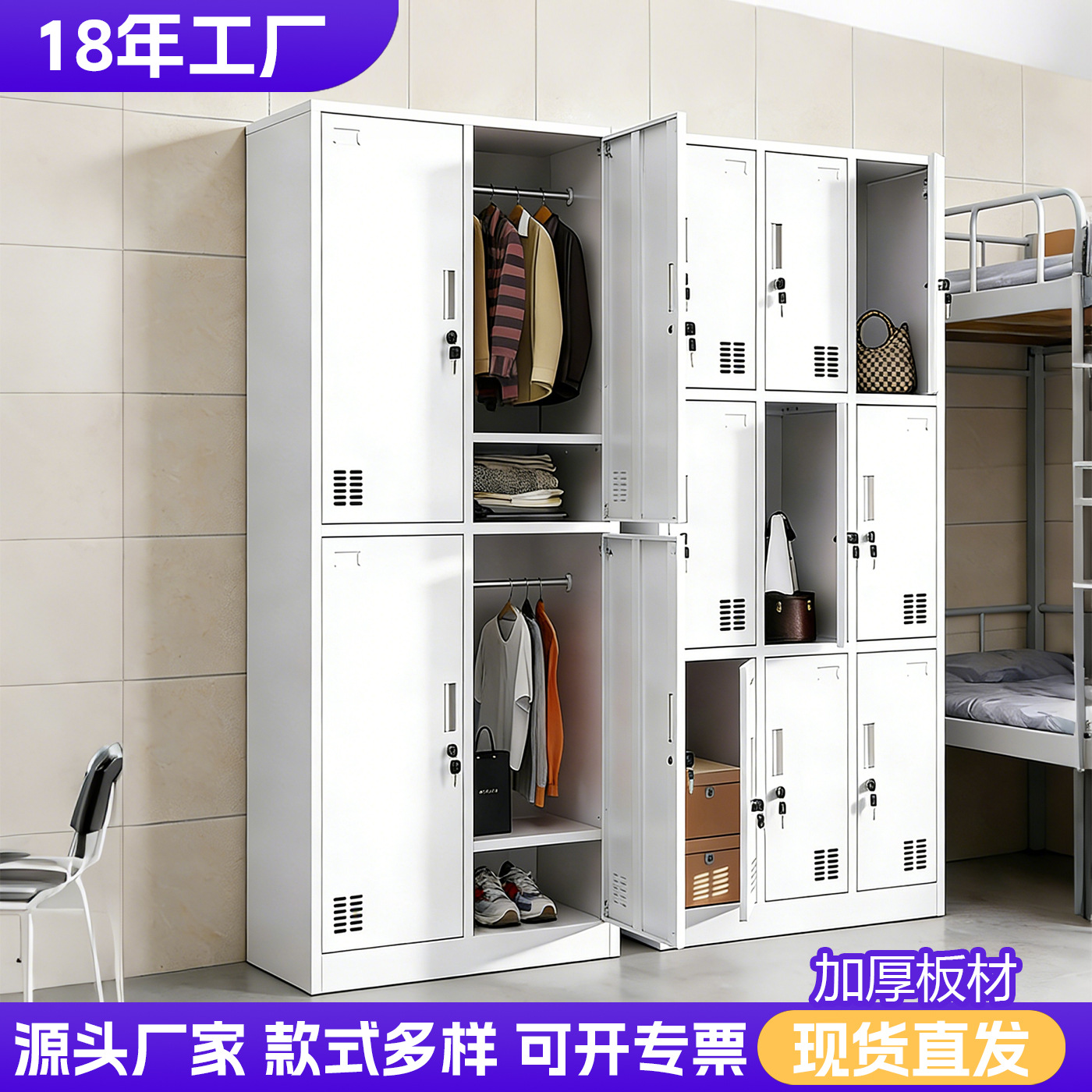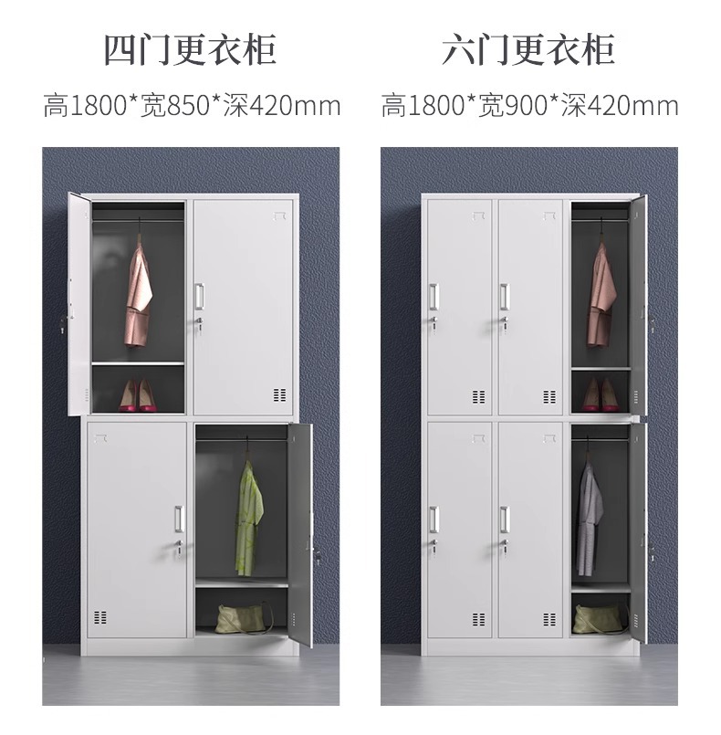 钢制更衣柜员工宿舍换衣柜浴室带锁储物柜工厂多门鞋柜铁皮格子柜
