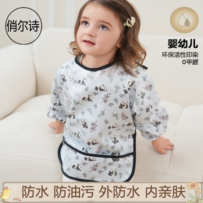 子供用カバー防水長袖反着赤ちゃんの食事服エプロン純綿子供用カバー