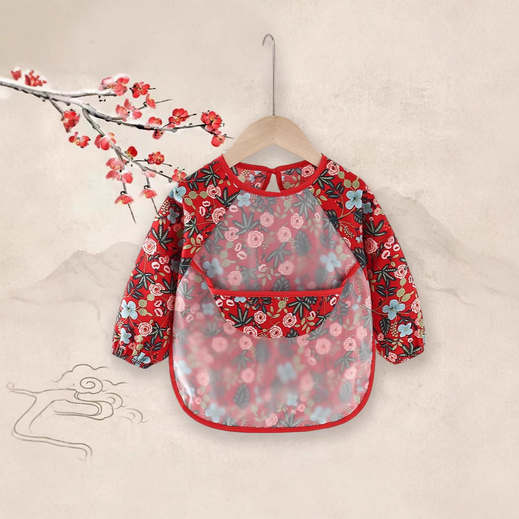 子供用カバー防水長袖反着赤ちゃんの食事服エプロン純綿子供カバー赤ちゃんのよだれかけ