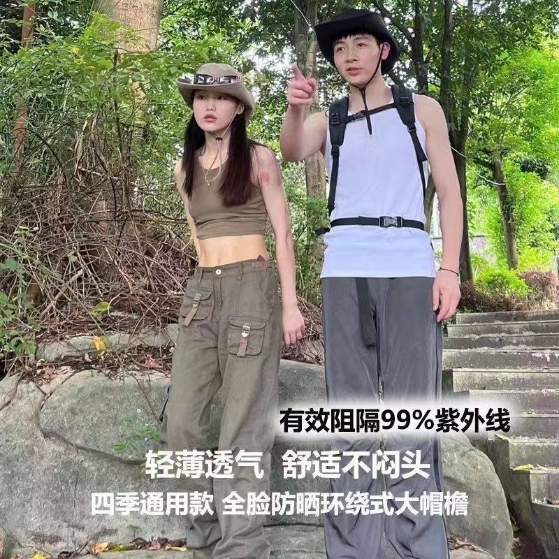 アウトドアマスク日焼け止め帽子男女夏の大きなつば紫外線防止太陽帽子自転車釣り登山帽