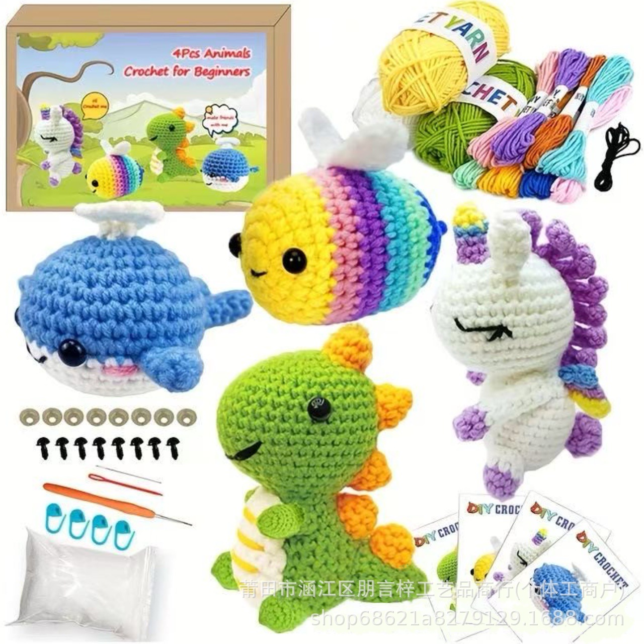 クロスボーダー新商品 人形編み物 手編み材料パック 四色恐竜材料パック