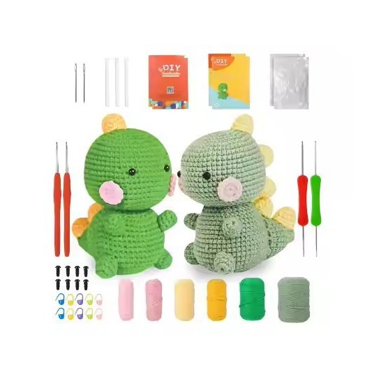 卸売かぎ針編み材料パッケージ手作りウール人形ニットかぎ針編み材料グリーン恐竜 DIY 装飾セット