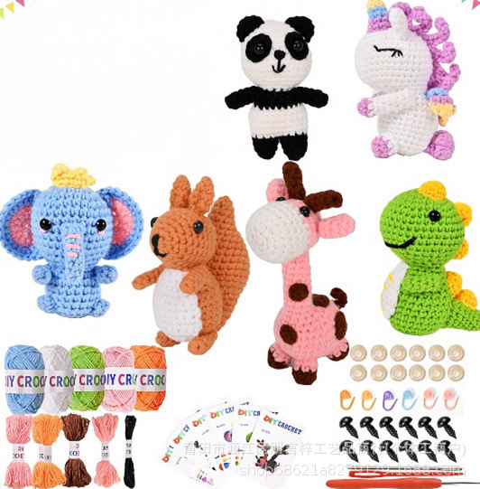 クロスボーダー DIY 新しいかぎ針編み素材パッケージ動物シリーズ手編み人形ウールセット組み合わせ