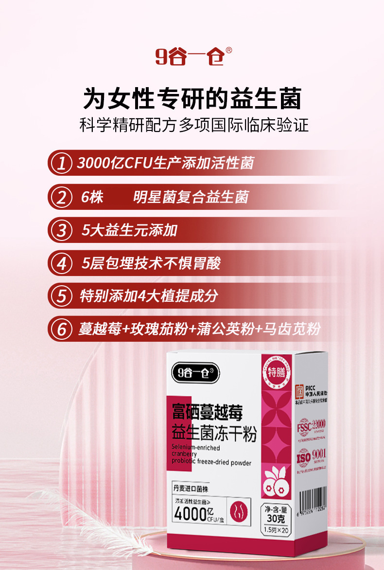 富セレンクランベリープロバイオティクス女性ロイ氏ラクトバチルス株バラナス粉スタープロバイオティクス凍結乾燥粉