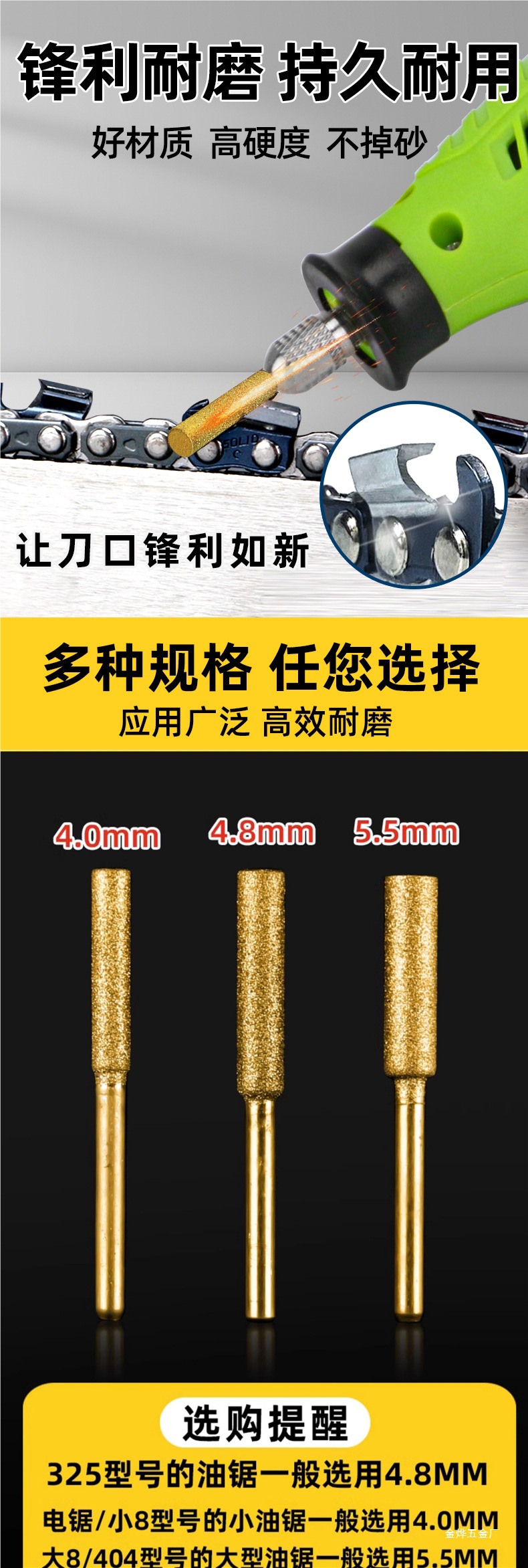 4.0mmチタンメッキゴールド研削ヘッド【2個】電動ノコギリ・小型チェーンソーに最適,4.0mmチタンメッキゴールド研削ヘッド【5個入】電動ノコギリ・小型チェーンソーに最適,4.0mmチタンメッキゴールド研削ヘッド【10個入】電動ノコギリ・小型チェーンソーに最適,4.8mm チタンメッキゴールド研削ヘッド [2 個] ほとんどのチェーンソーに適しています,4.8mm チタンメッキゴールド研削ヘッド [5 個] ほとんどのチェーンソーに適しています,4.8mm チタンメッキゴールド研削ヘッド [10 個] ほとんどのチェーンソーに適しています,大型チェーンソーに最適な5.5mmチタンゴールドメッキ研削ヘッド【2個】,大型チェーンソーに最適な5.5mmチタンゴールドメッキ研削ヘッド【5個入】,大型チェーンソーに最適な5.5mmチタンゴールドメッキ研削ヘッド【10個入】,4.0mmエメリー研削ヘッド【2個】チェーンソー/小型チェーンソーに最適,4.0mmエメリー研削ヘッド【5個入】チェーンソー・小型チェーンソーに最適,4.0mmエメリー研削ヘッド【10個入】チェーンソー・小型チェーンソーに最適,4.8mm エメリー研削ヘッド [2 個] ほとんどのチェーンソーに適しています,4.8mm エメリー研削ヘッド [5 個] ほとんどのチェーンソーに適しています,4.8mm エメリー研削ヘッド [10 個] ほとんどのチェーンソーに適しています,大型チェーンソーに適した5.5mmエメリー研削ヘッド[2個],大型チェーンソーに最適な5.5mmエメリー研削ヘッド【5個入】,大型チェーンソーに最適な5.5mmエメリー研削ヘッド【10個入】,4.0mmセラミック研削ヘッド[2個]初心者には割れやすいのでお勧めしません,4.0mmセラミック研削ヘッド【5個入】初心者には割れやすいのでおすすめしません。,4.0mmセラミック研削ヘッド【10個入】初心者には割れやすいのでおすすめしません,4.8mmセラミック研削ヘッド[2個]初心者には割れやすいのでお勧めしません,4.8mmセラミック研削ヘッド[5個]初心者には割れやすいのでお勧めしません,4.8mmセラミック研削ヘッド【10個入】初心者には割れやすいのでおすすめしません。,5.5mmセラミック研削ヘッド[2個] 初心者には割れやすいのでお勧めしません,5.5mmセラミック研削ヘッド[5個] 初心者には割れやすいのでお勧めしません,5.5mmセラミック研削ヘッド【10個入】初心者には割れやすいのでおすすめしません