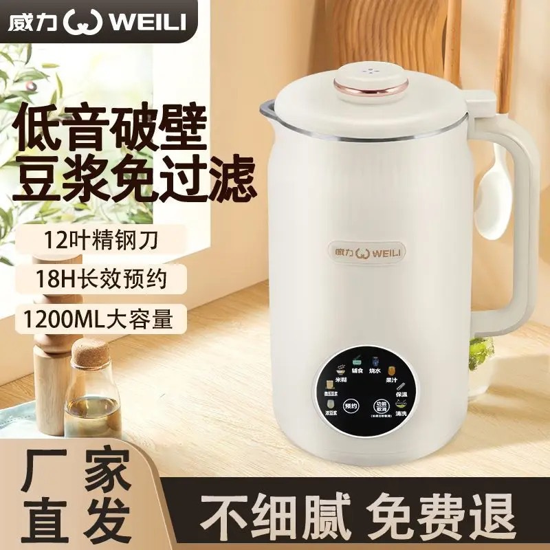 威力破壁机小型家用全自动无渣轻音早餐机多功能豆浆机免滤煮批采
