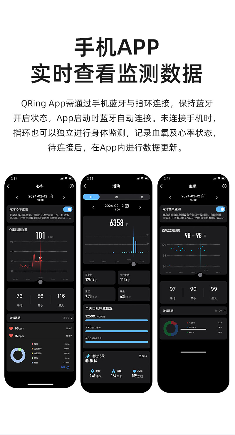 R04(Qring) ステップ距離カロリー心拍数血中酸素睡眠スポーツストレスリモコン写真スマートリング