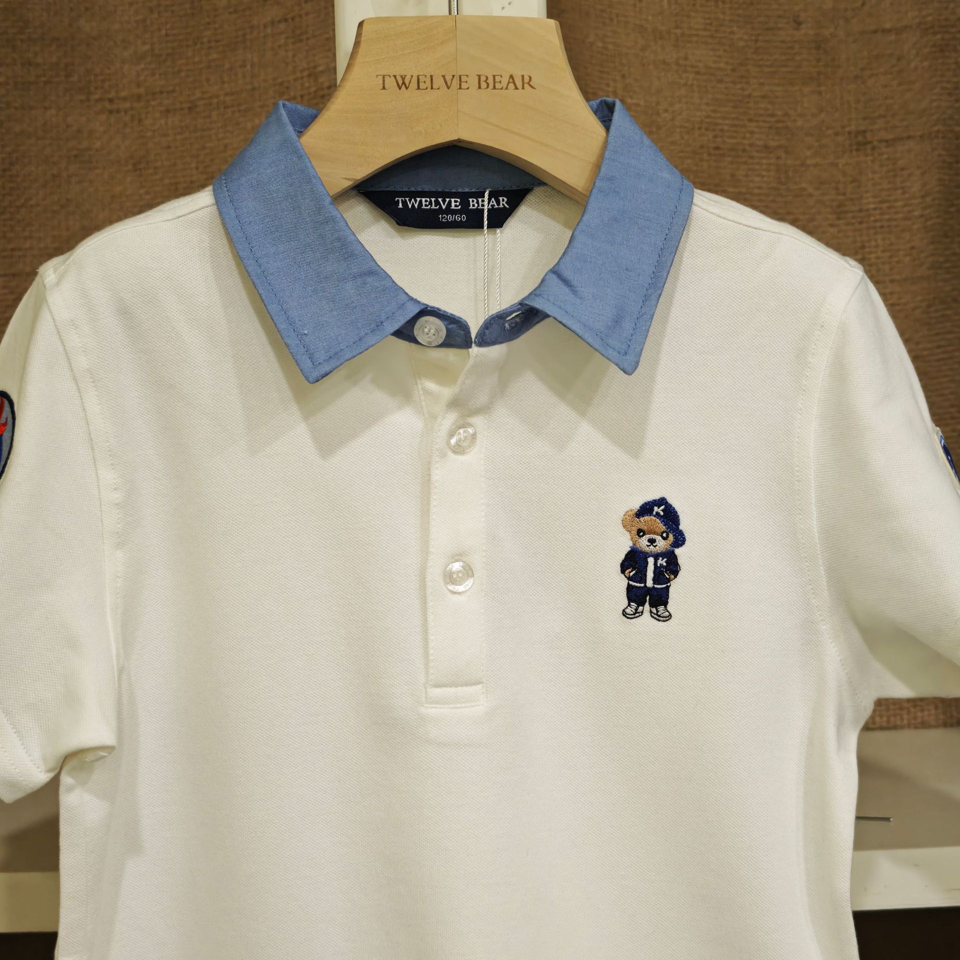 現物春秋型児童純綿水洗い白シャツ長袖襟折り上着男児白色シャツ熊童装