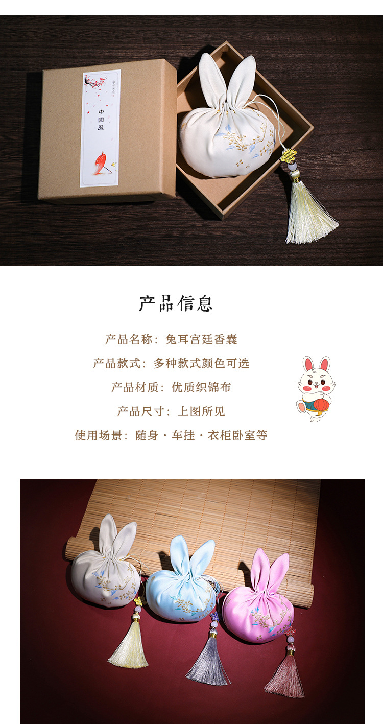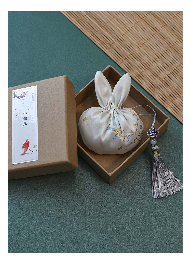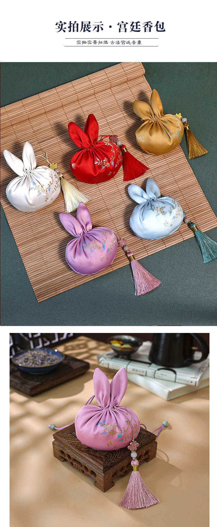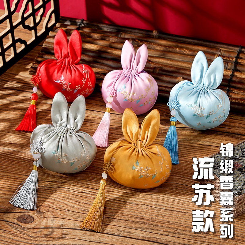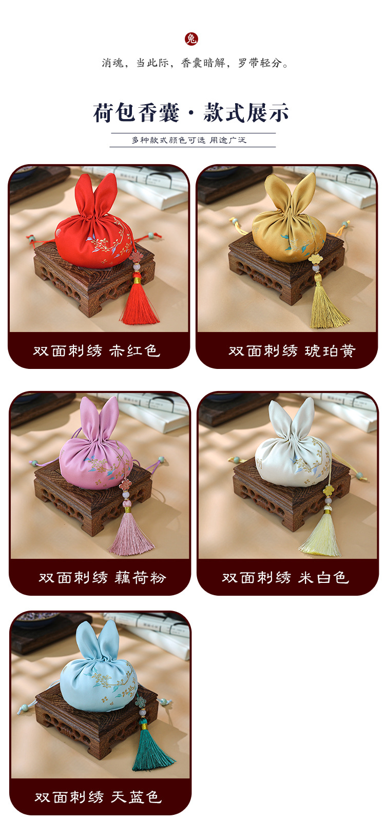 新年のウサギの香袋、古代風の刺繍入り携帯用香袋、福袋、空袋、漢服の装飾品、ヨモギの小香袋