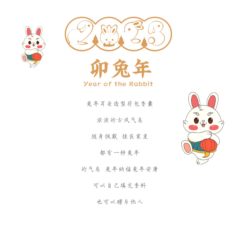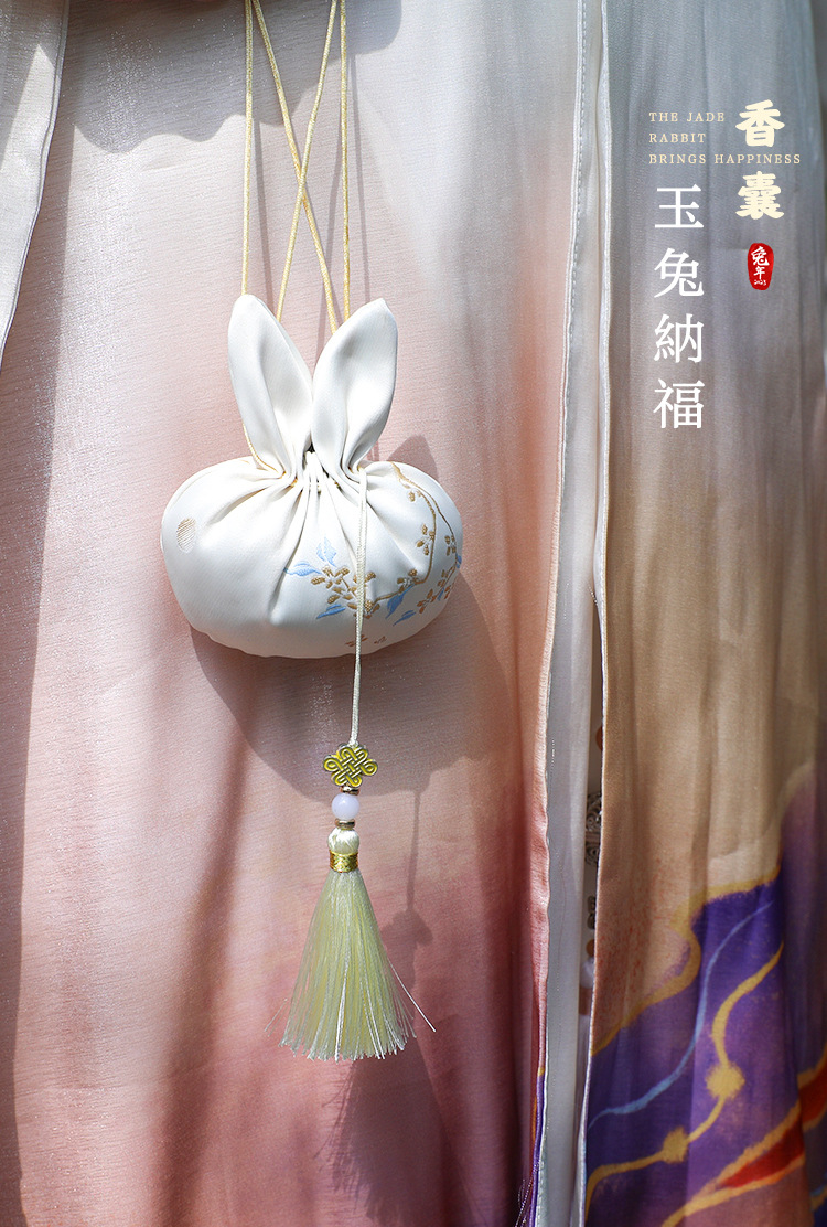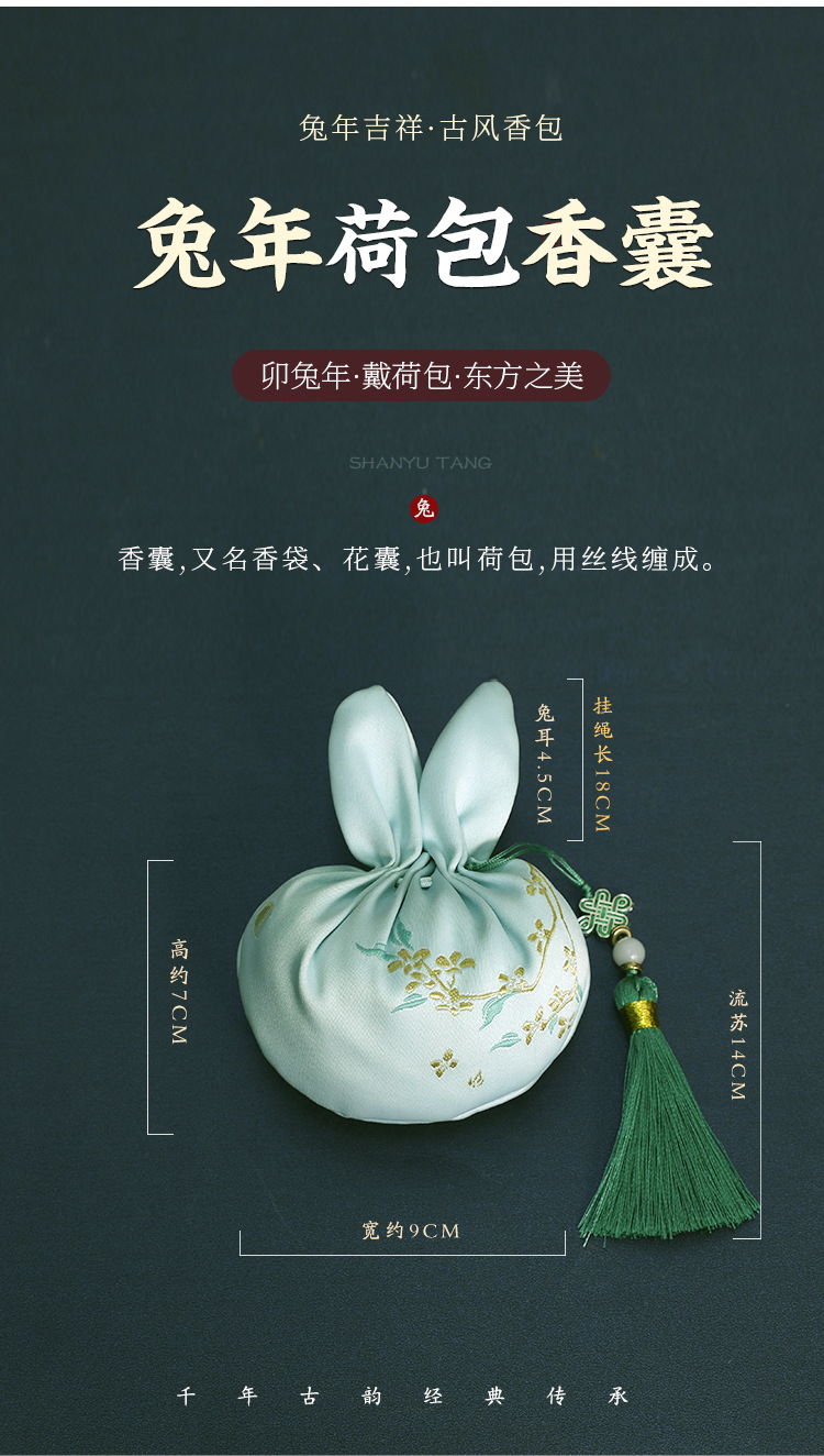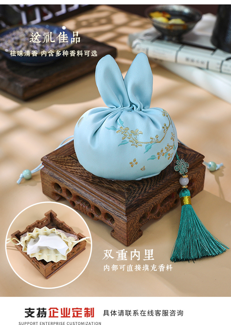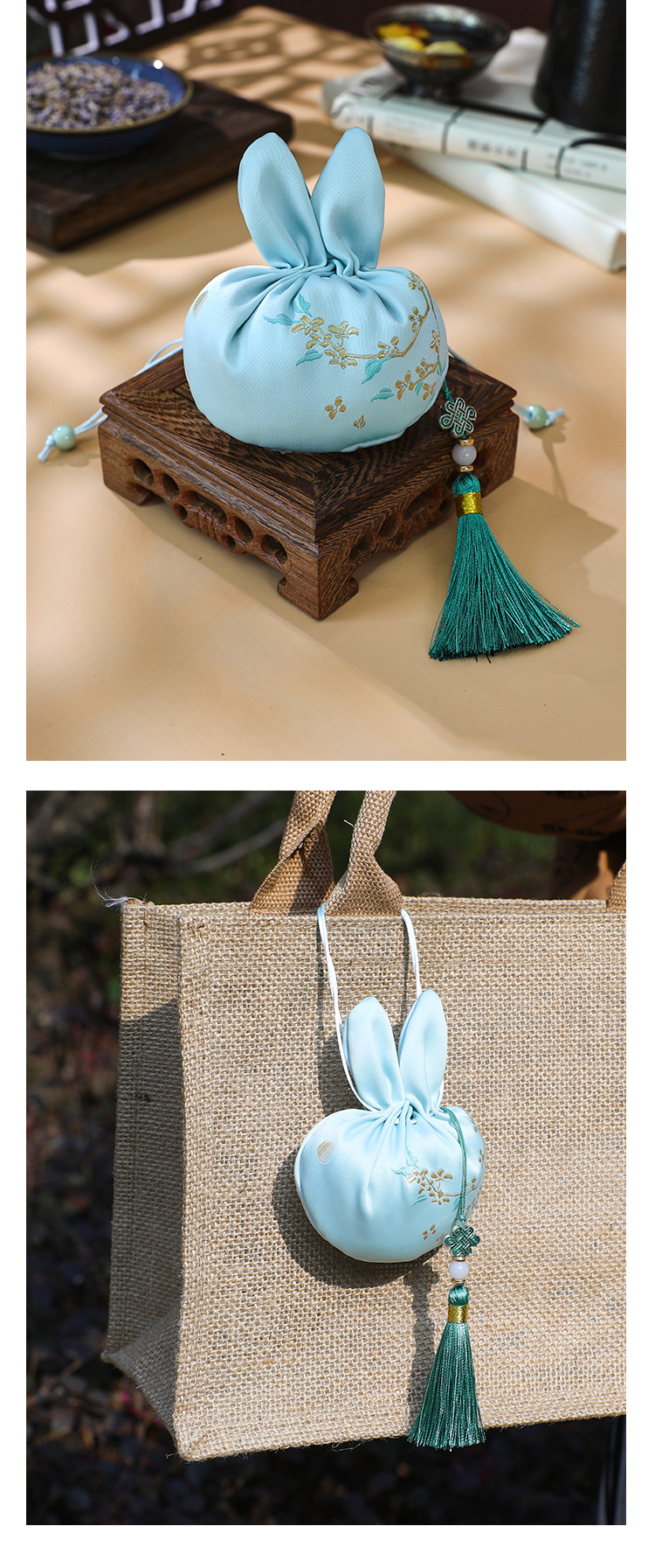 新年のウサギの香袋、古代風の刺繍入り携帯用香袋、福袋、空袋、漢服の装飾品、ヨモギの小香袋