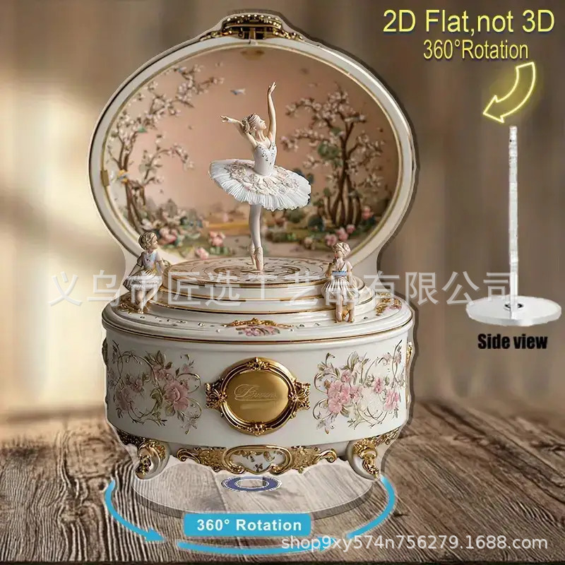 跨境TEMU2D亚克力优雅芭蕾舞者,旋转木马音乐盒桌面装饰