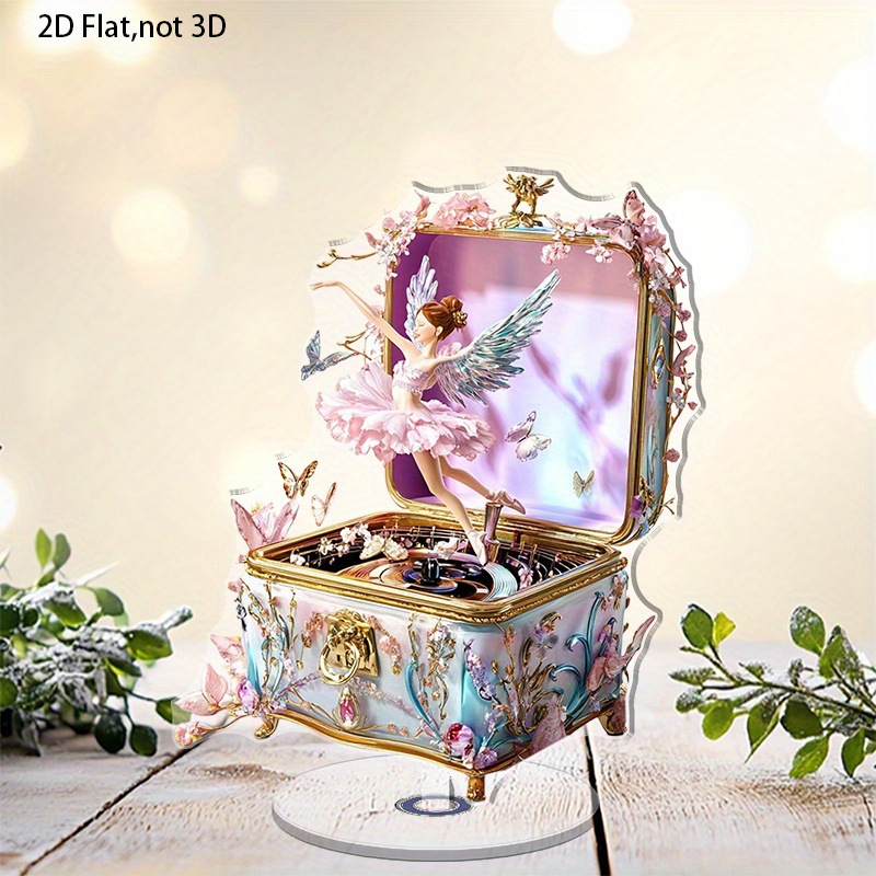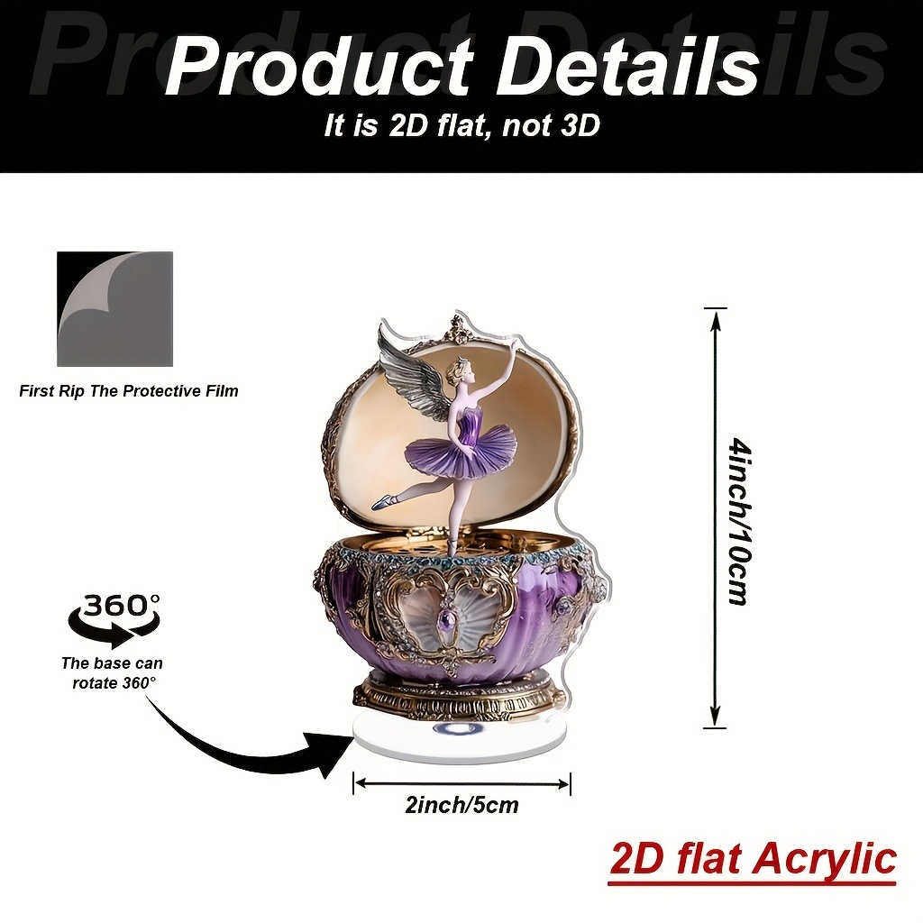 1 個 2D フラット回転アクリルオルゴールダンシングエンジェルまたはバレエダンサーカラフルなデスクトップ装飾
