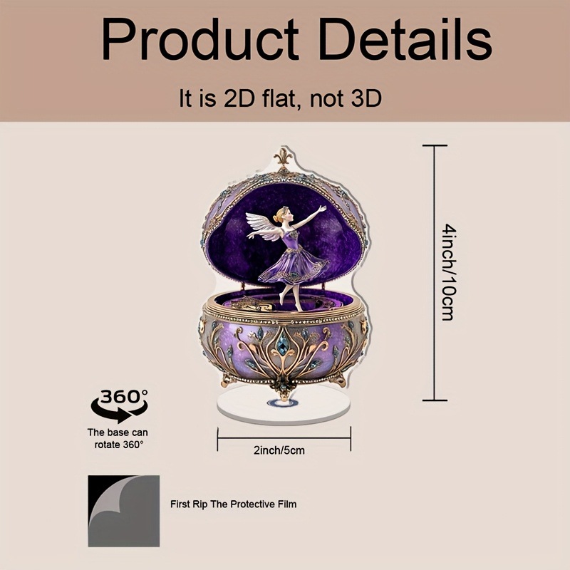 1 個 2D 回転アクリルオルゴール魅惑的なダンス妖精デザイン紫とゴールドの夢のようなテーマ