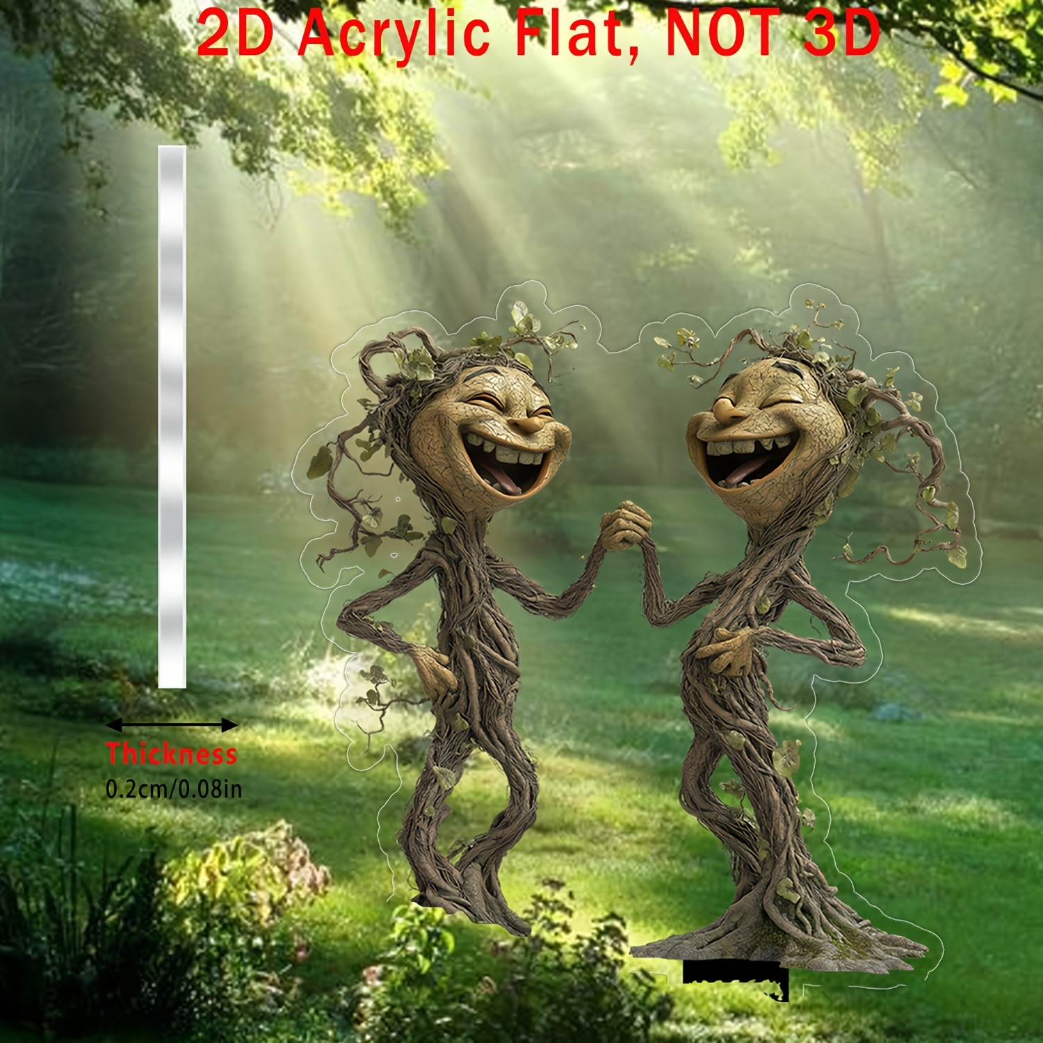 1 個 2D アクリルフラットプリント面白いダブルツリーエルフ装飾ロゴ屋外ガーデンインサート用