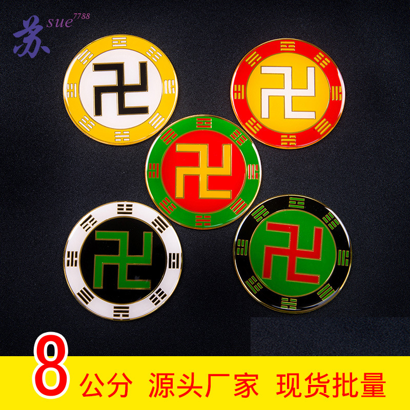 レリーフ黄銅8センチ万文字家屋欠補角札置物黄赤黒緑白色レーヨン現物ロット