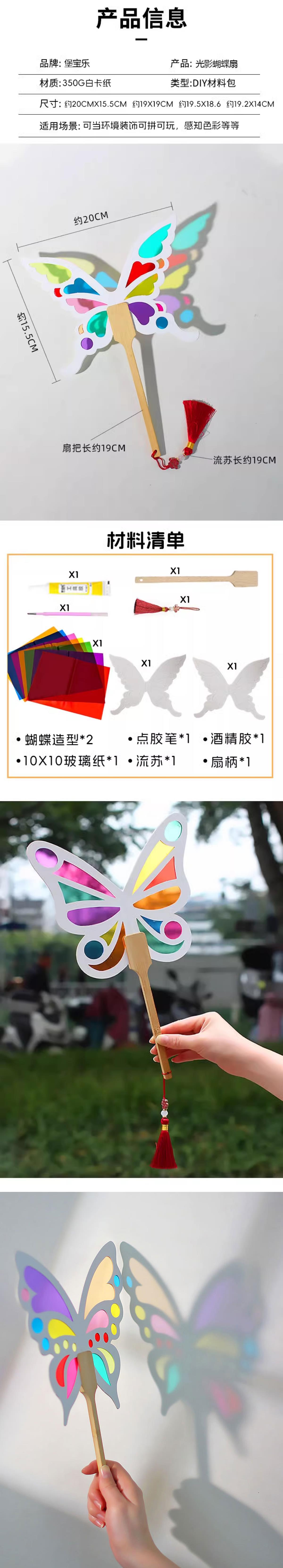 屋外の春と夏の装飾光と影の蝶の扇子手作り DIY カラー透明フィルム素材パッケージ