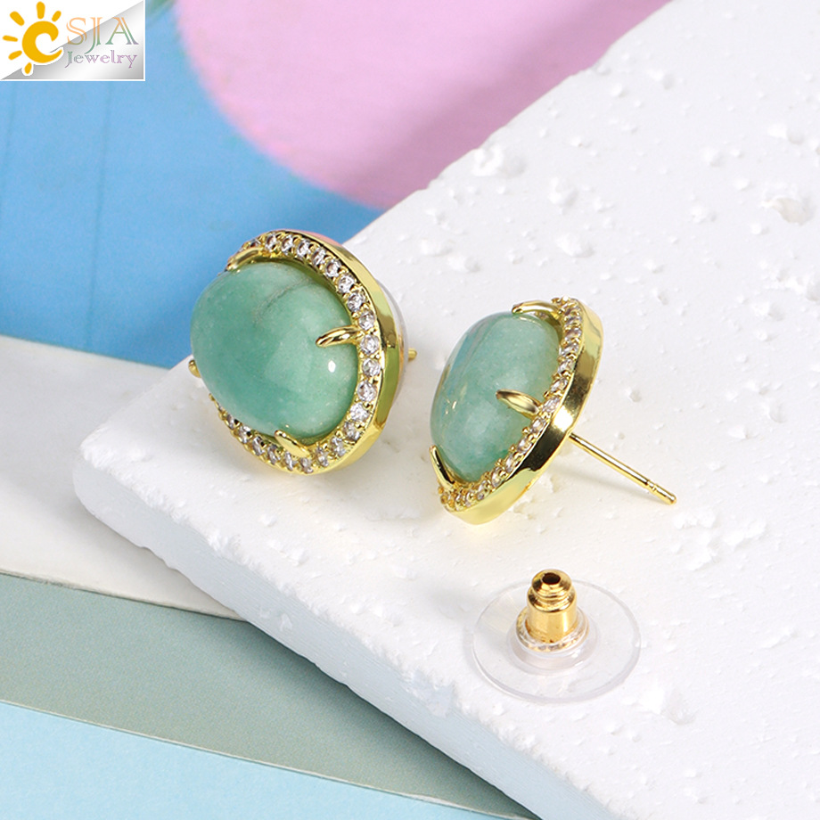 シンプルなデザインの夏の耳飾りは丸い天然石の金メッキ爪に美しい豆のピアス水晶のアクセサリーをつけます。
