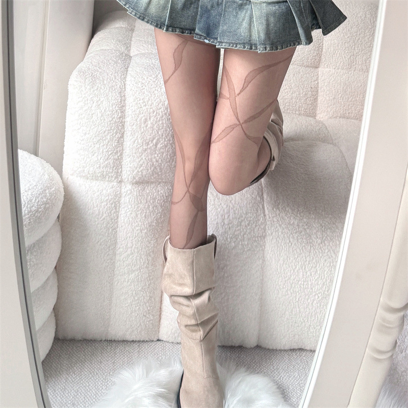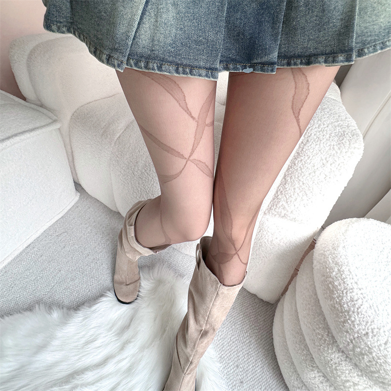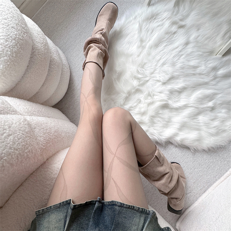 春夏ジャカードリボンラインクロスコアスパンシルクパンスト女性のセクシーなストッキング在庫卸売