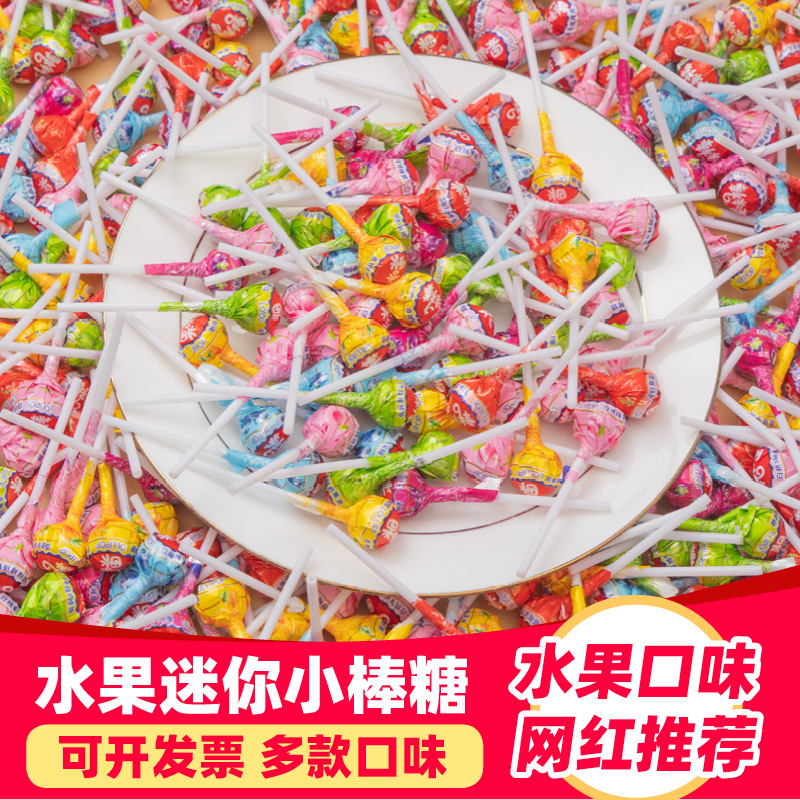 爱伊佳迷你棒棒糖批发散装500g水果味棒棒糖儿童零食硬糖果礼物