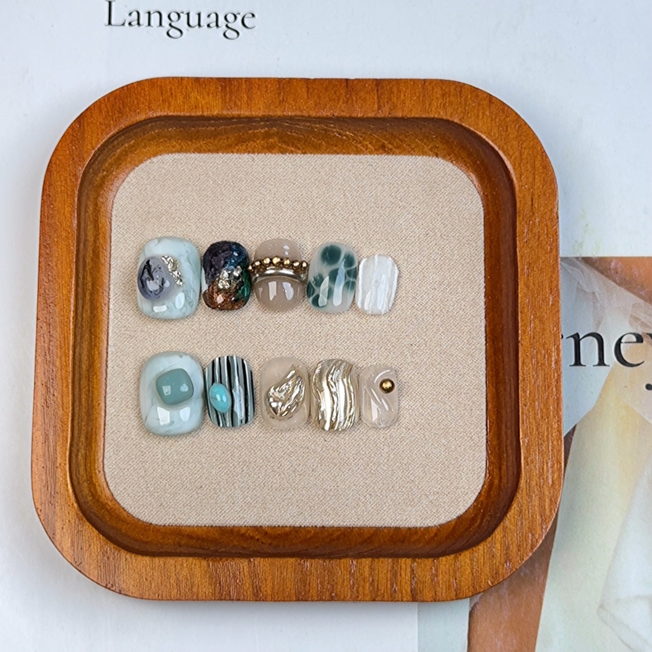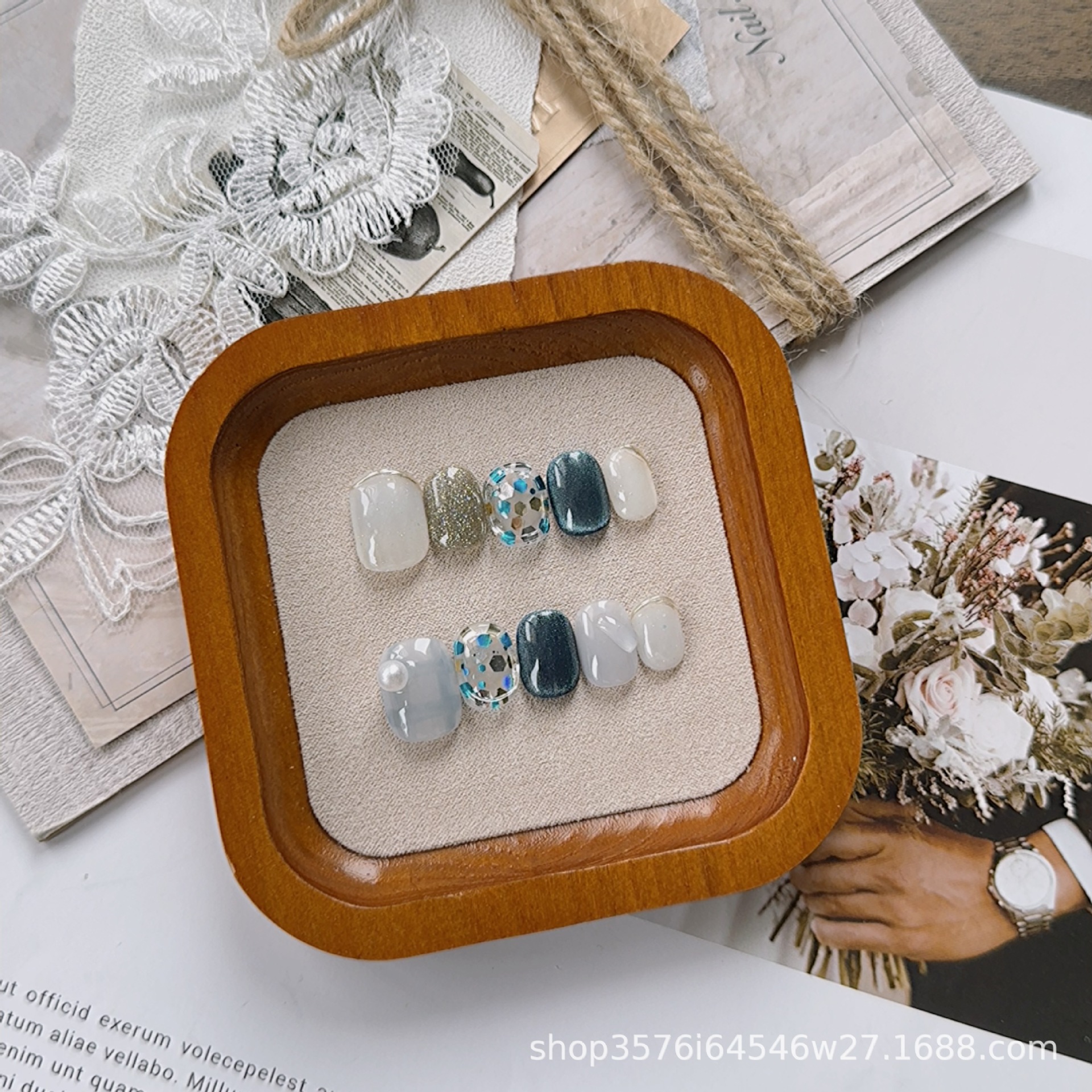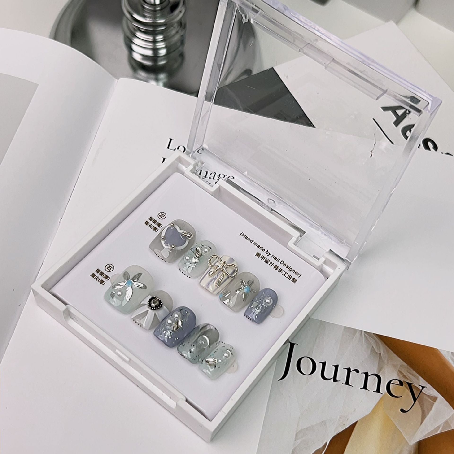 純粋に手作りのウェアラブルネイル卸売ニッチインスタイルハイエンドマニキュアオーシャンブルー重工業完成マニキュア