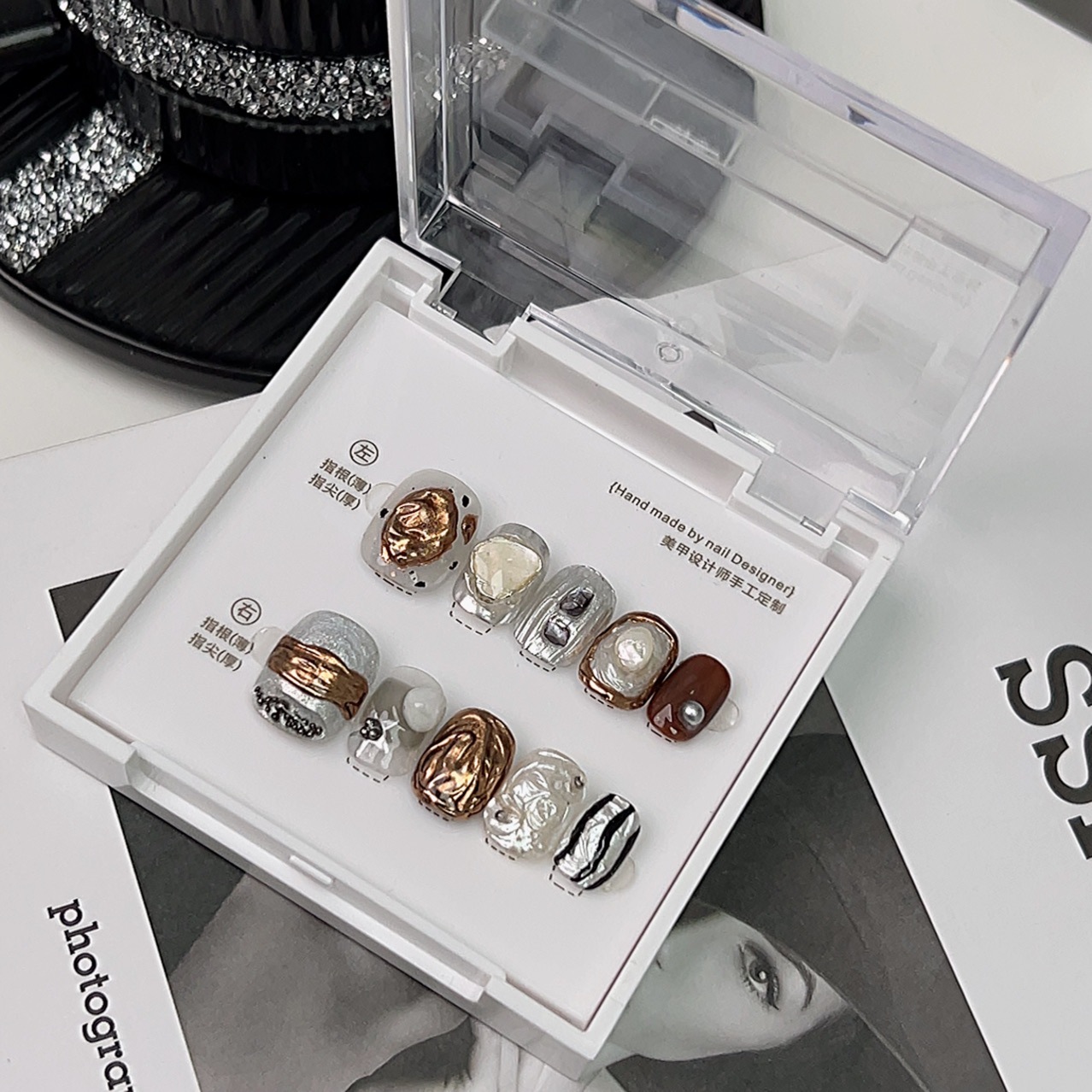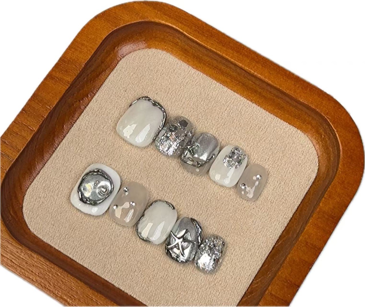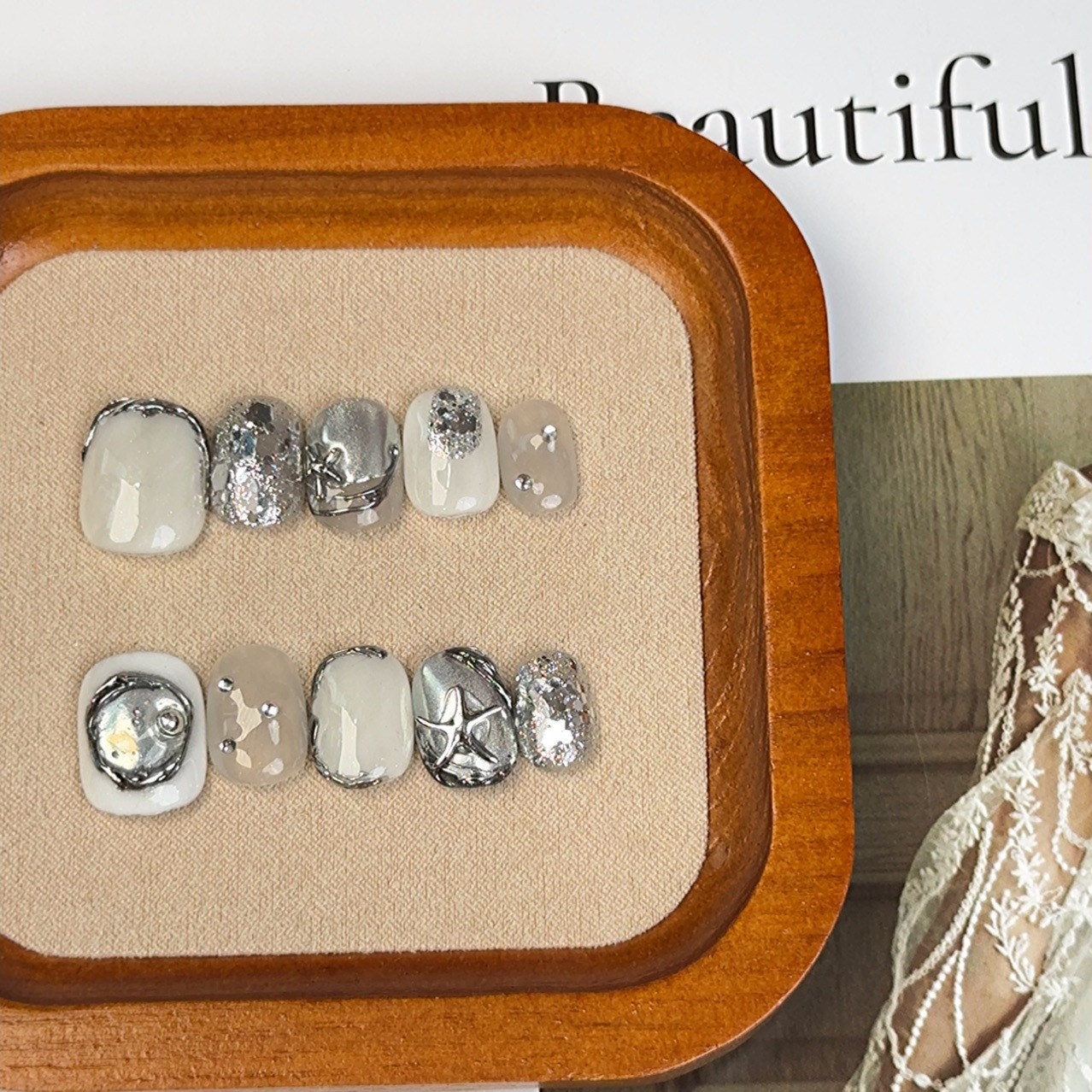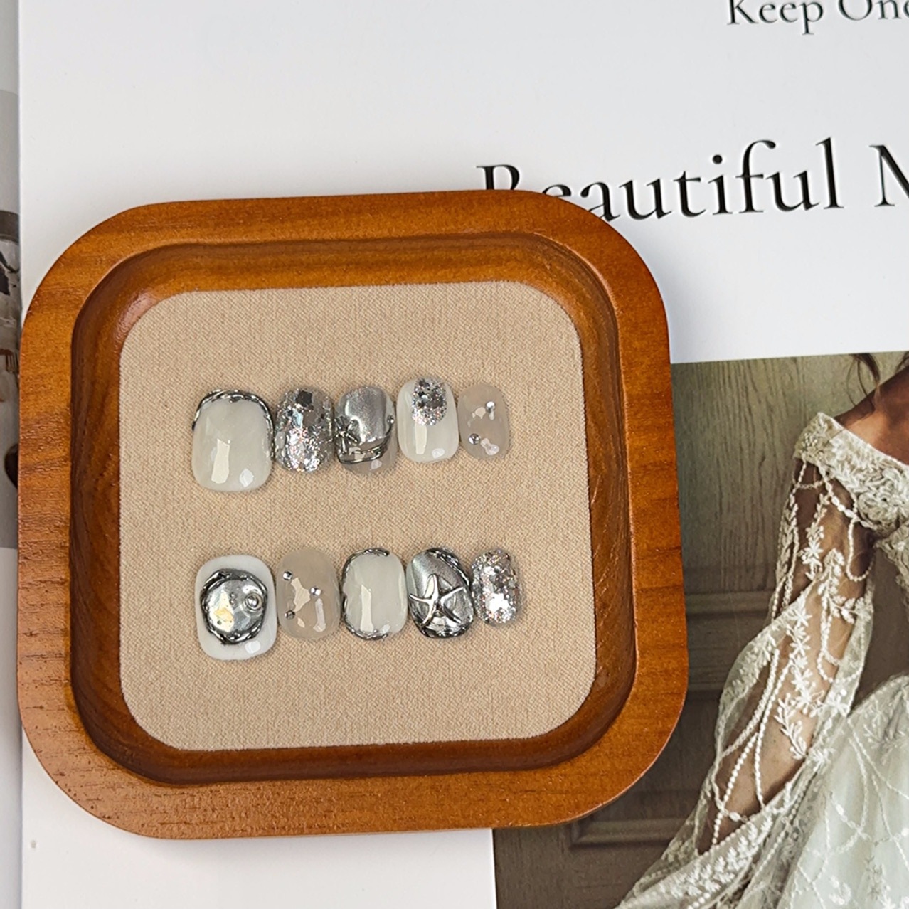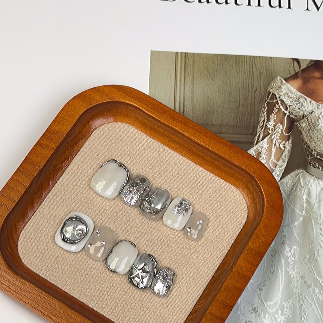 インスタイル ニッチ ライト ラグジュアリー ハイエンド ジェントル スタイル フィニッシュ マニキュア シルバー スターフィッシュ マニキュア ハンドメイド ウェアラブル