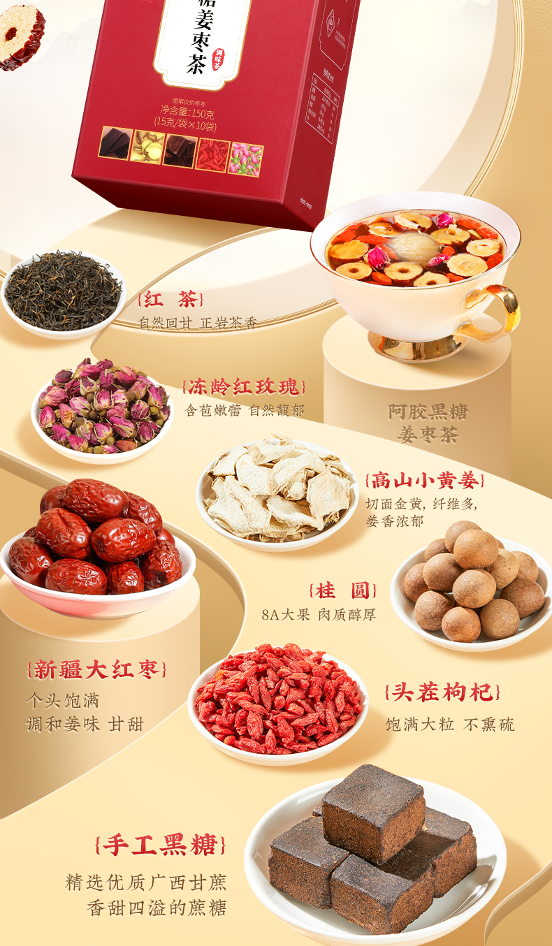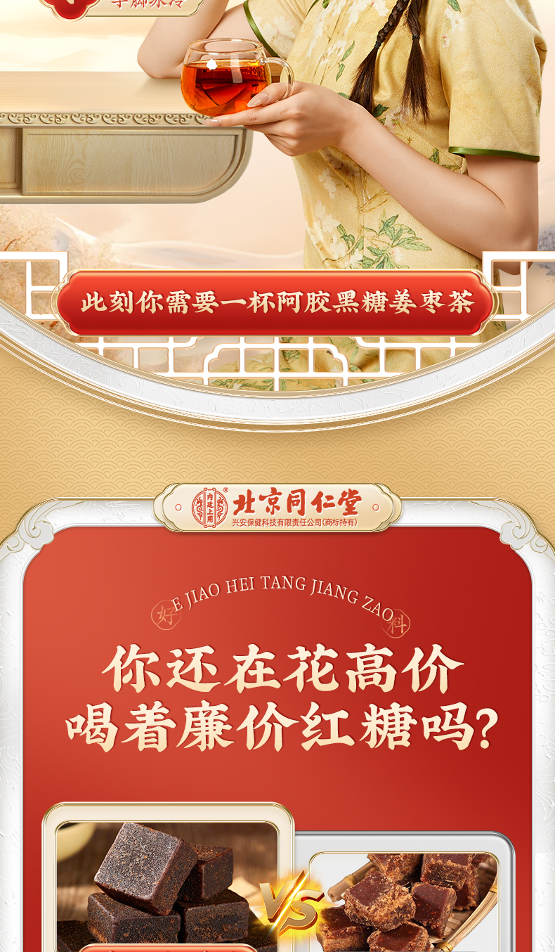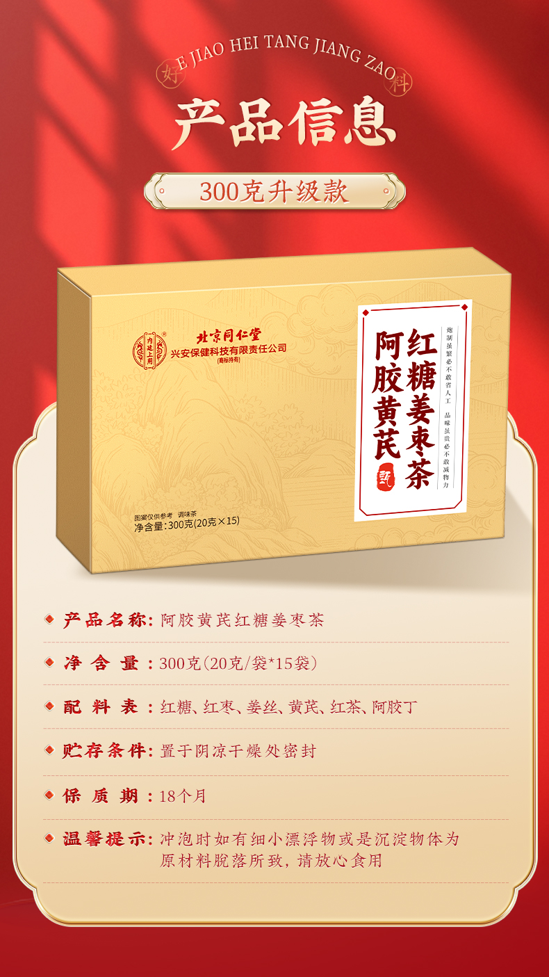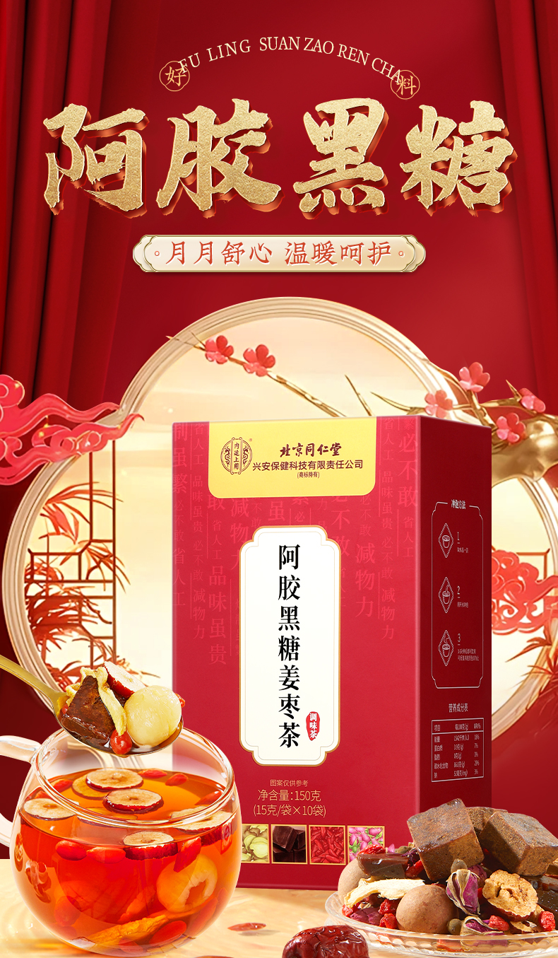 北京同仁堂紅糖姜茶阿膠姜棗茶大叔母気血宮黒糖寒気は彼女の姜汁を送ります。