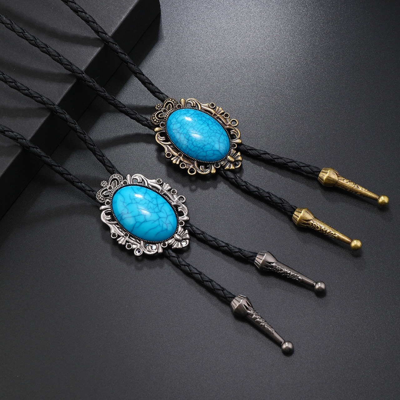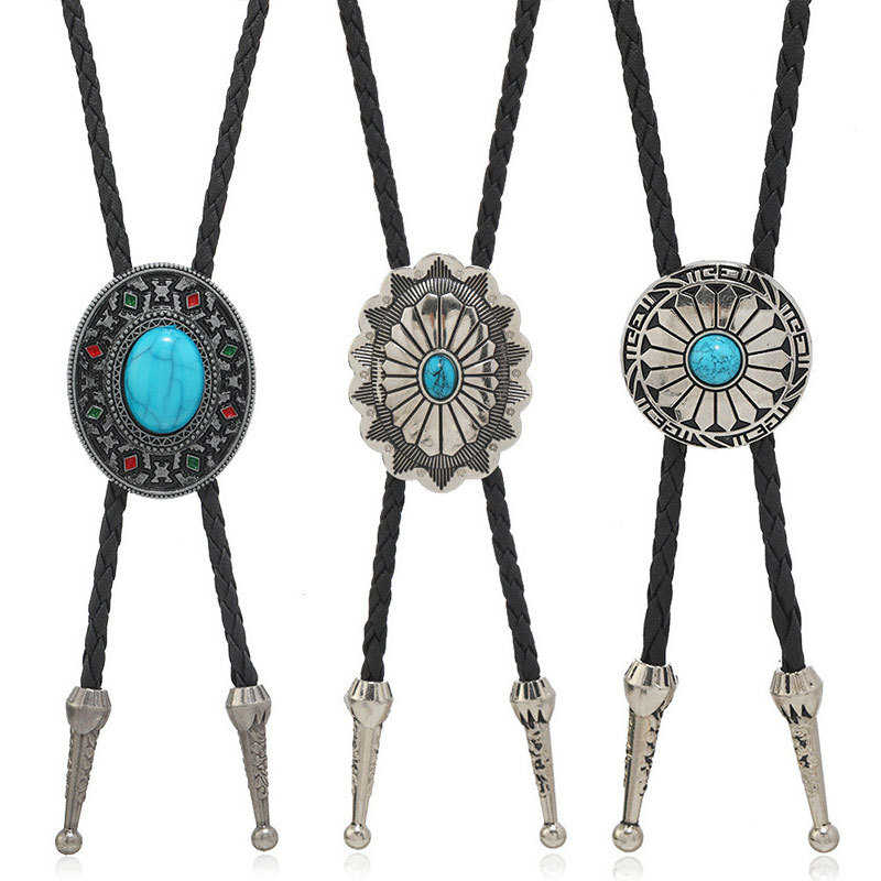 新品調節可能エナメル西部ポロネクタイ合金ペンダント蝶ネクタイbolo tieレトロ松石ネックレス