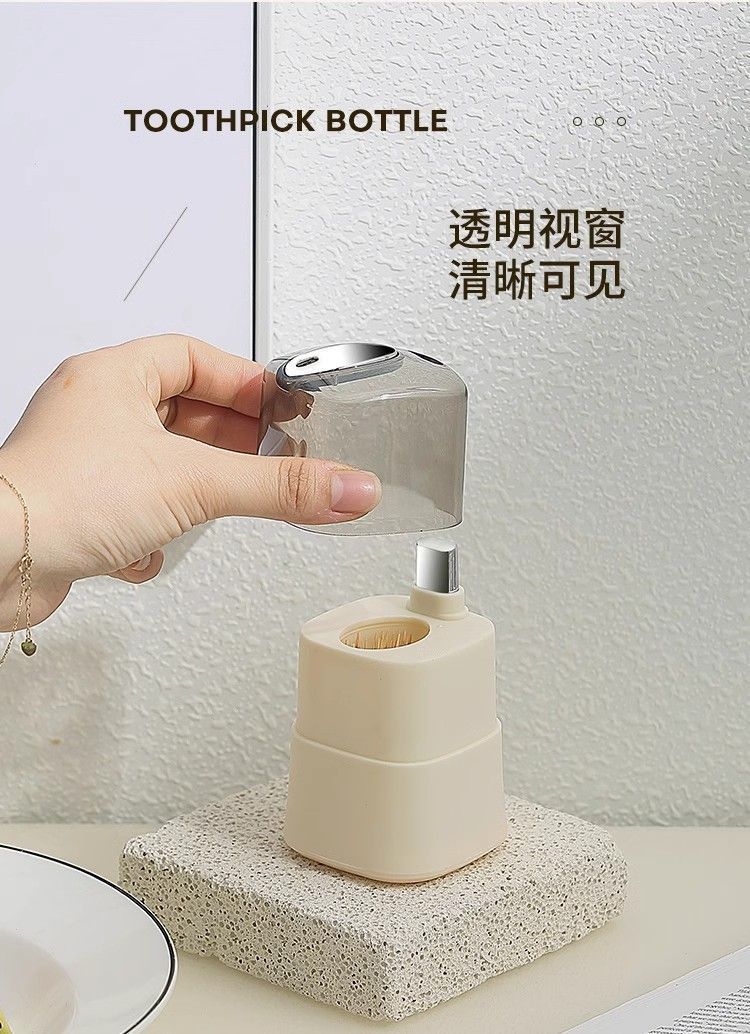 2025新款牙签筒自动弹出家用收纳高颜值个性奶油风新款轻奢牙签盒