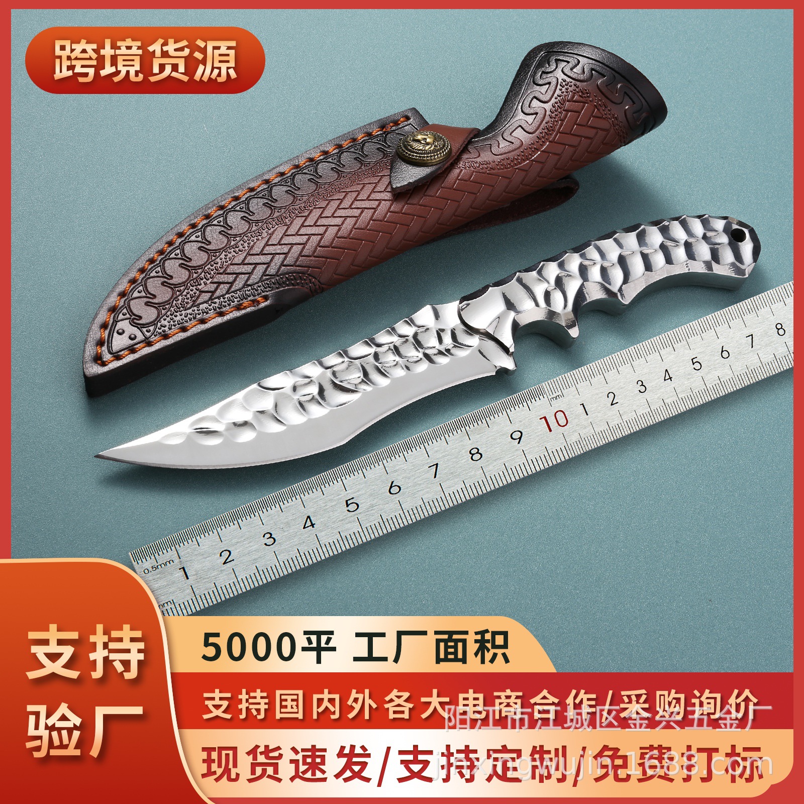 跨境抖音热卖厂家现货龙骨一体直刀户外求生野营求生刀鱼生水果刀