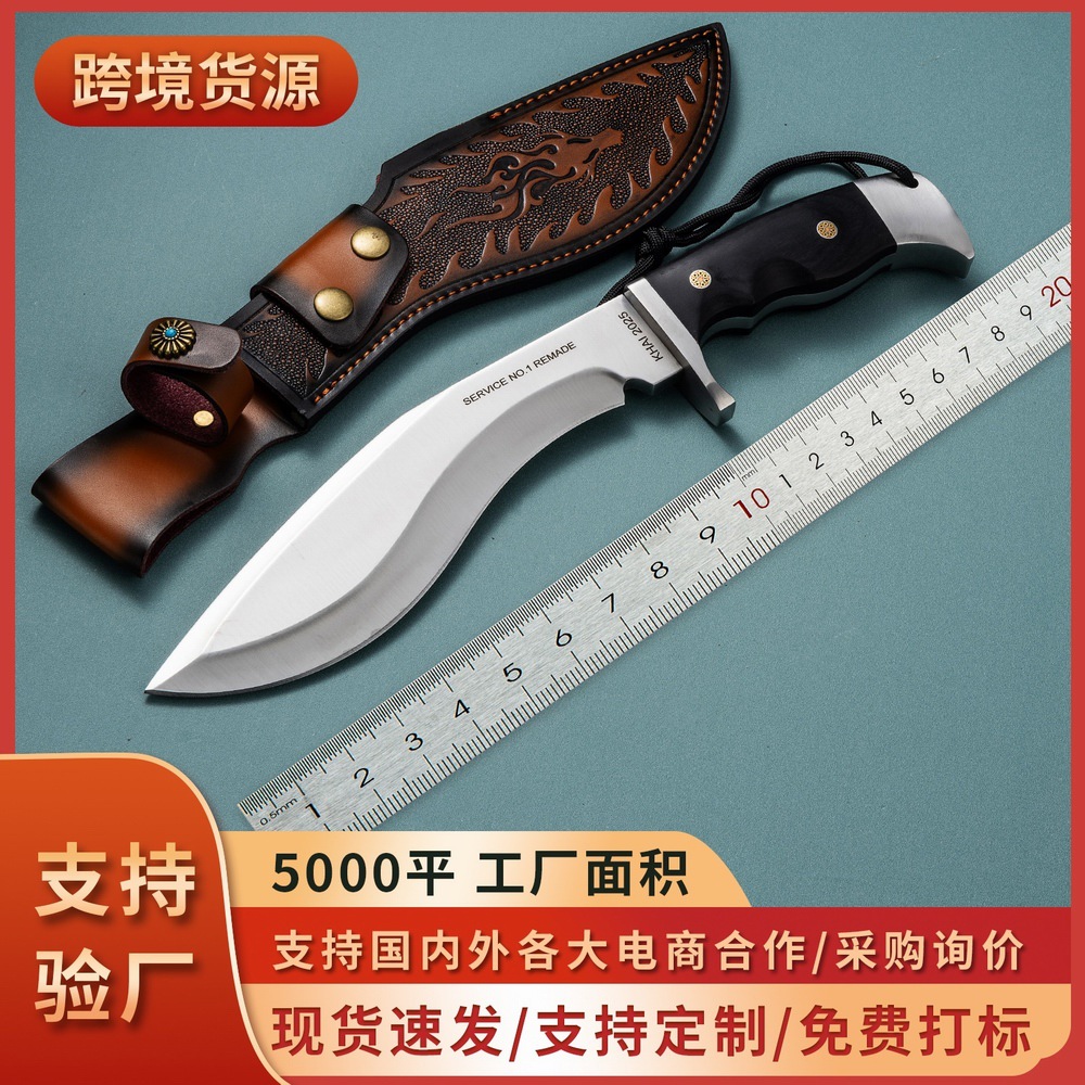 电商爆款热卖 阳江厂家现货龙骨一体雪豹弯刀户外求随身锋利小刀
