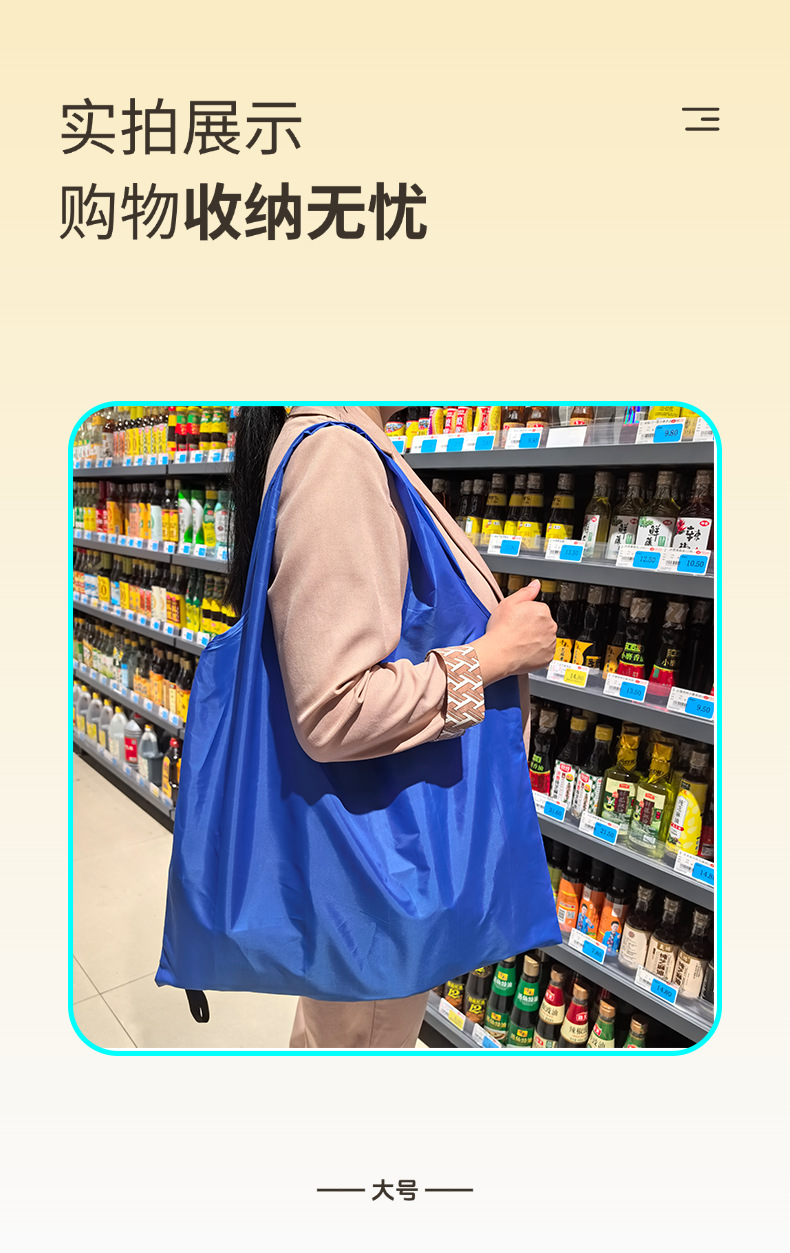 防水オックスフォード布折りたたみショッピングバッグメーカー現物ショルダー大容量スーパー収納純色環境保護折りたたみ袋