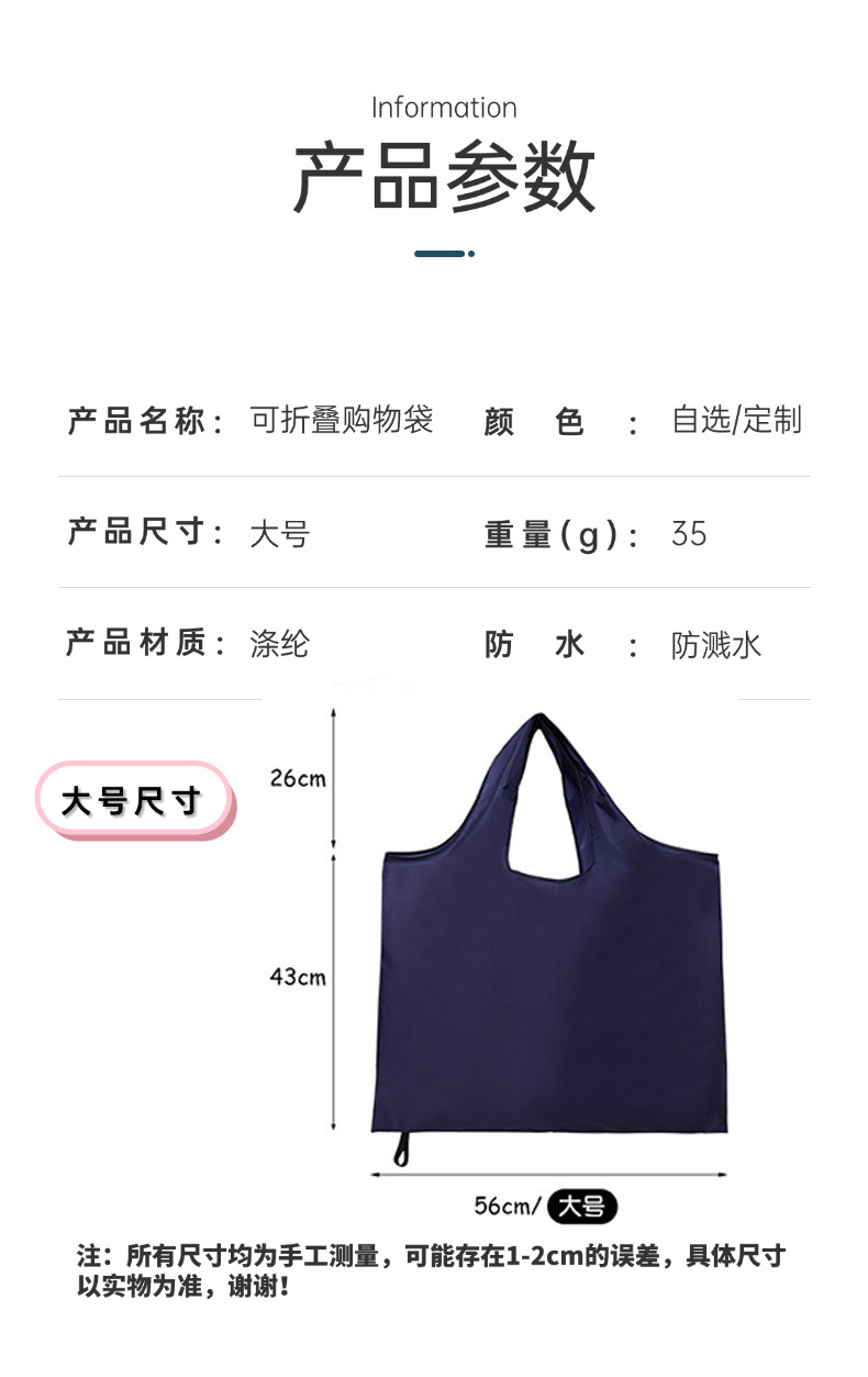 牛津布折叠环保购物袋 210D大号便携手提收纳袋大容量超市购物袋