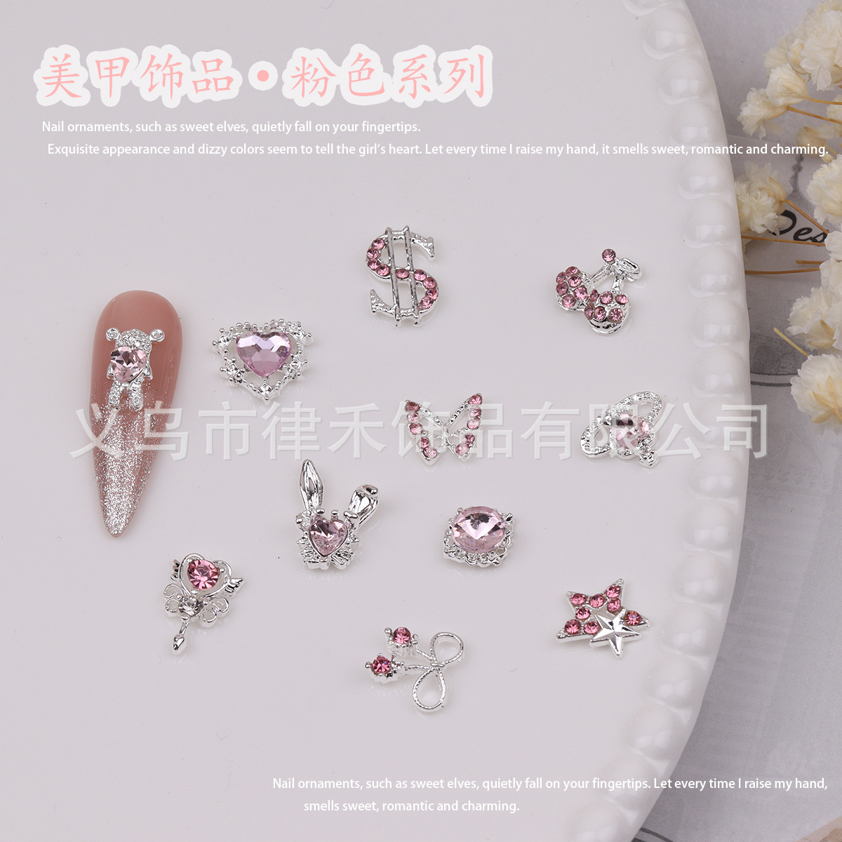 网红新款美甲粉色金属镶钻立体蝴蝶五角星配饰拼色爱心流星装饰品