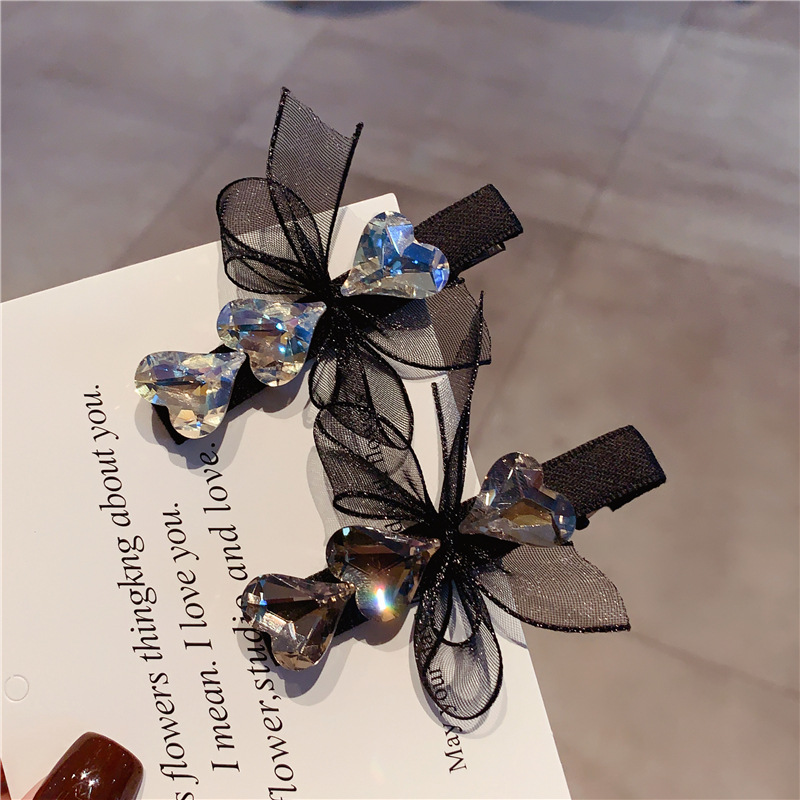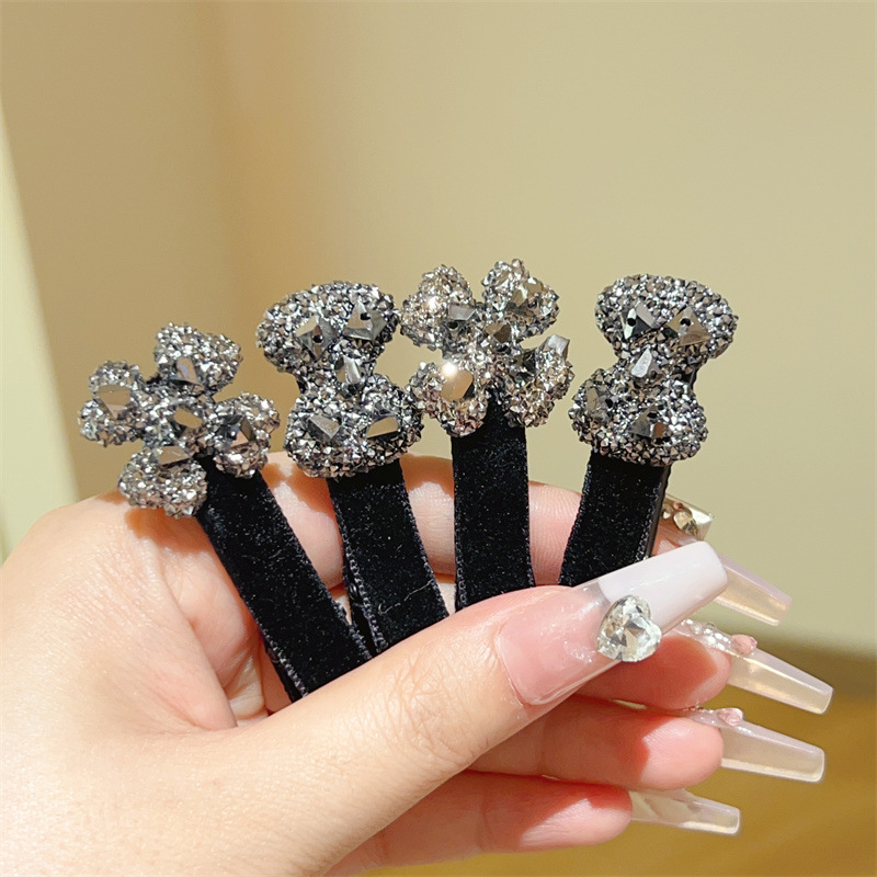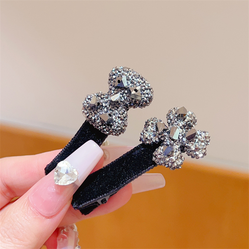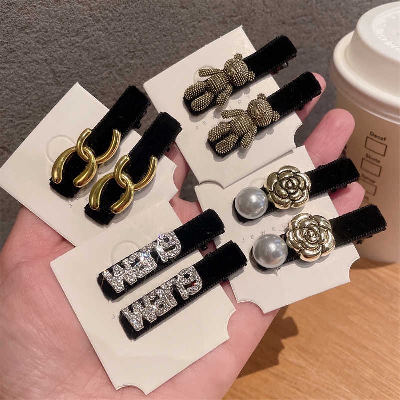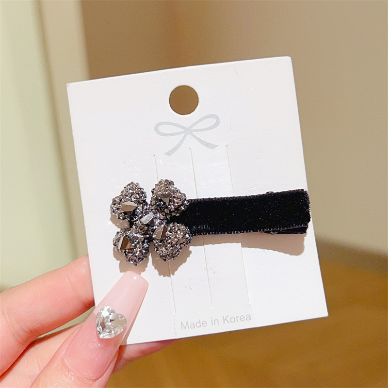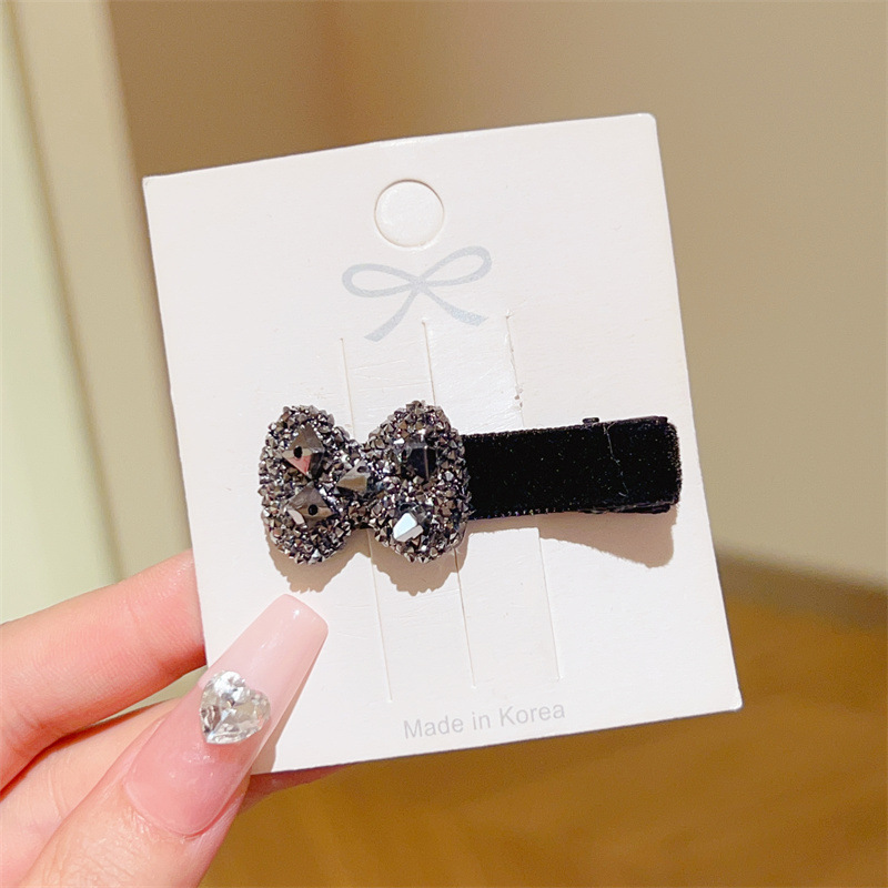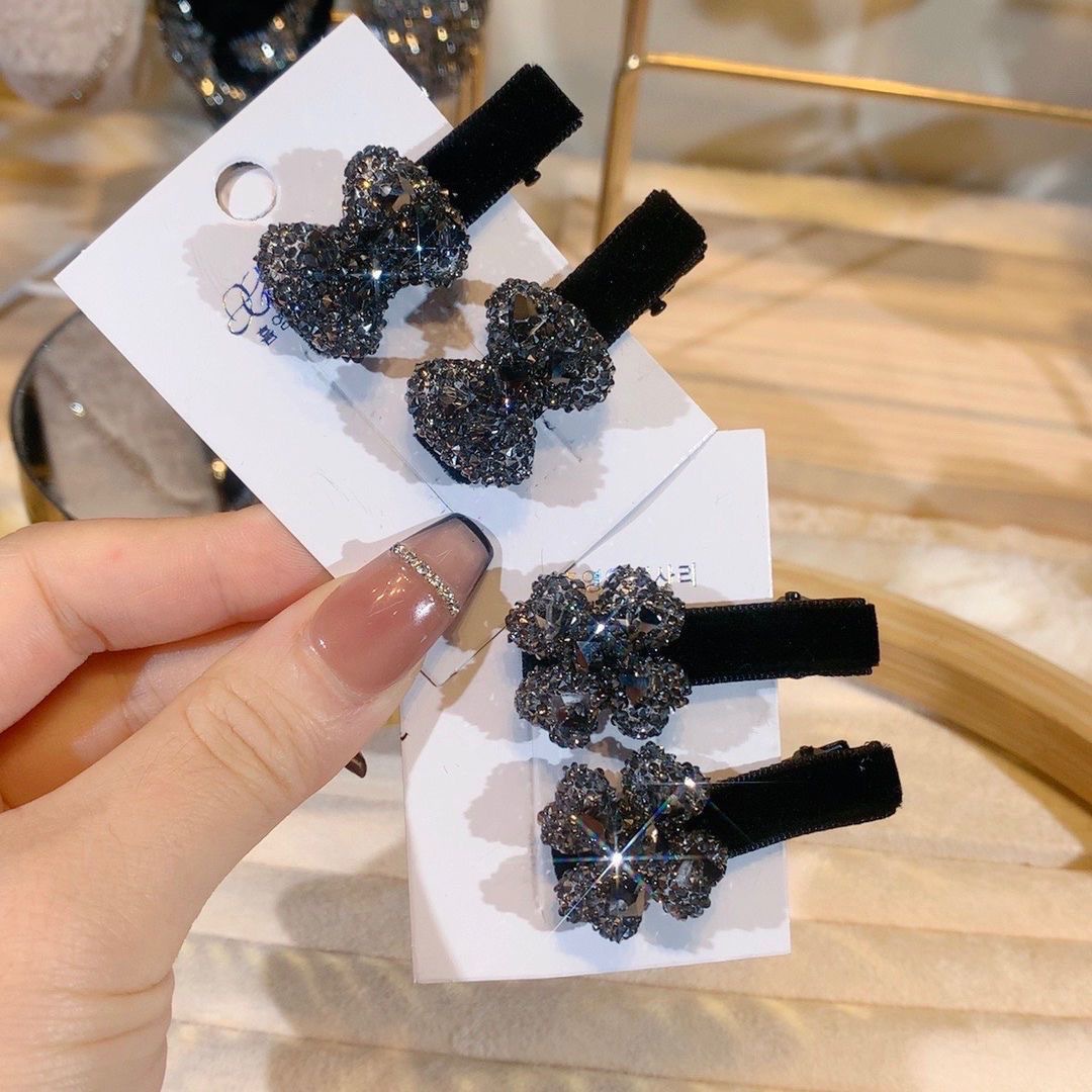 秋冬黑色小香风丝绒BB夹气质女后脑勺发夹水钻高级感边夹发卡夹子