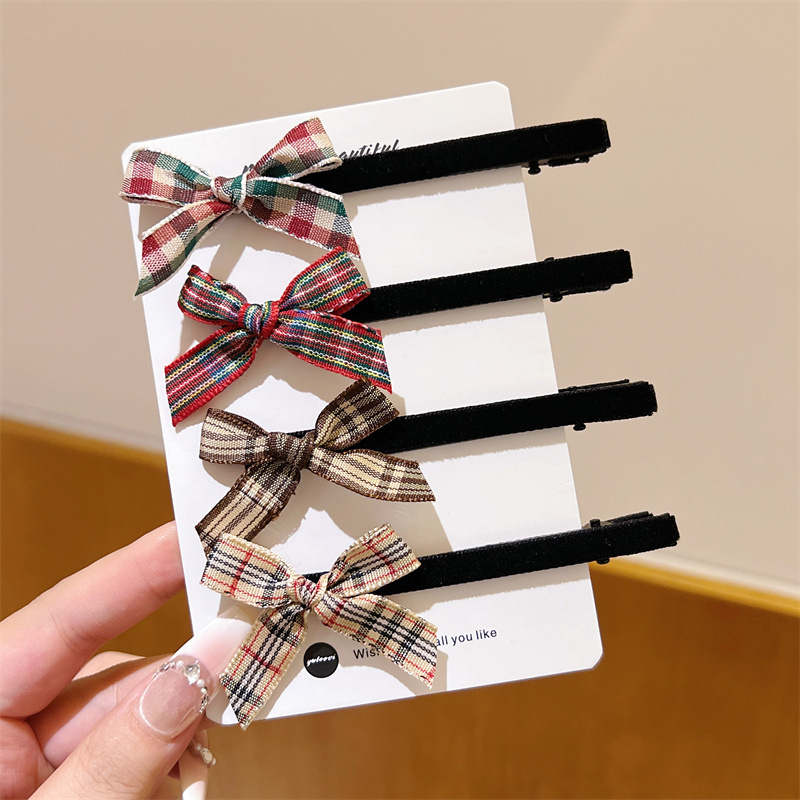 甜美格子丝带小蝴蝶结编发夹学院风格纹发饰可爱发卡夹子发饰品女