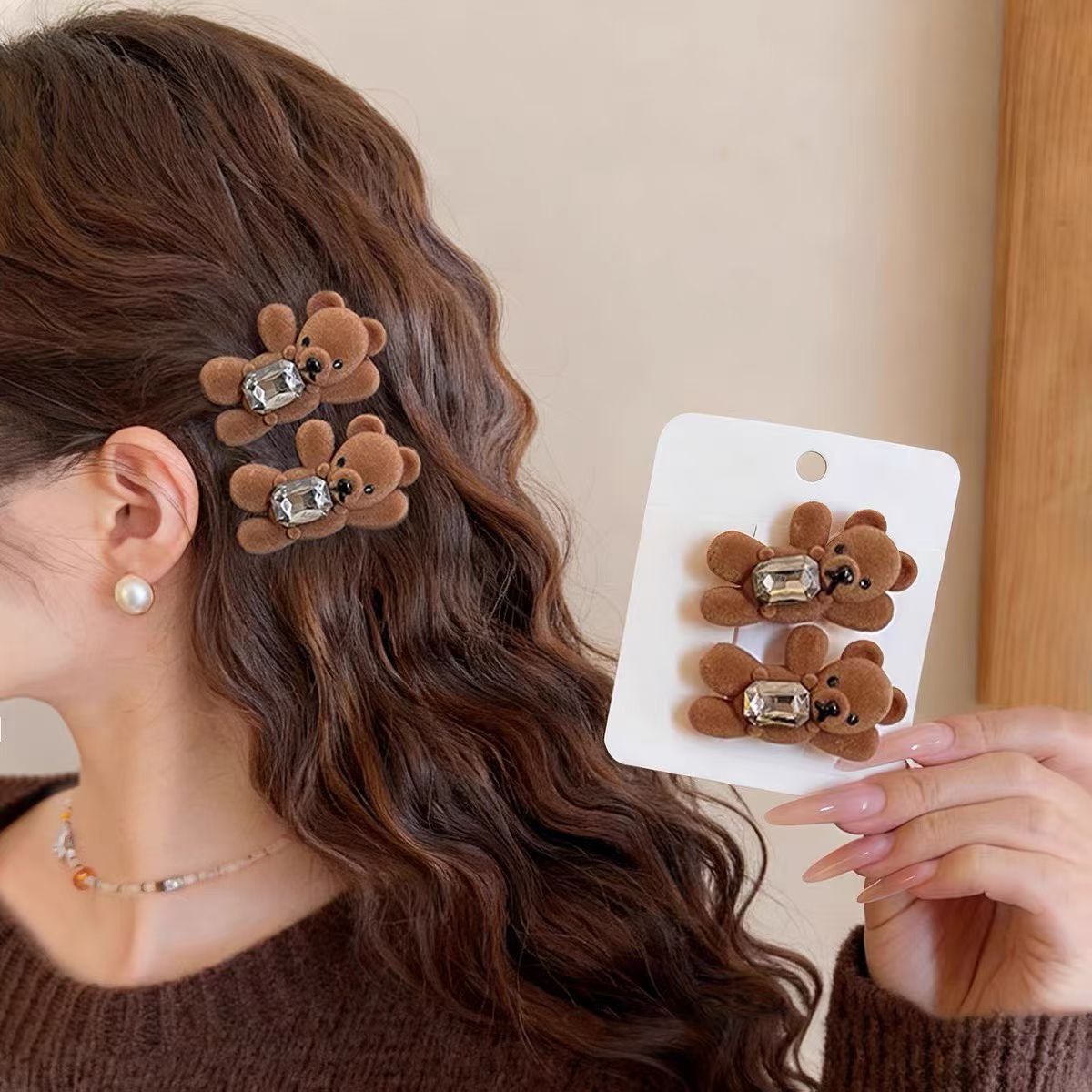 韩版复古秋冬植绒发夹小熊发夹可爱发卡水钻字母山茶花侧边刘海夹