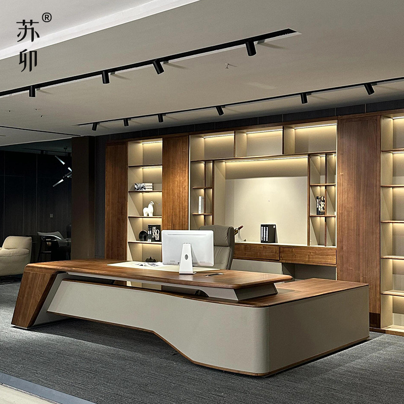 Su Mao 新中国風デスク ボスデスク 無垢材エグゼクティブデスク 会長社長デスク サイドテーブル付き ライトラグジュアリー 高級感