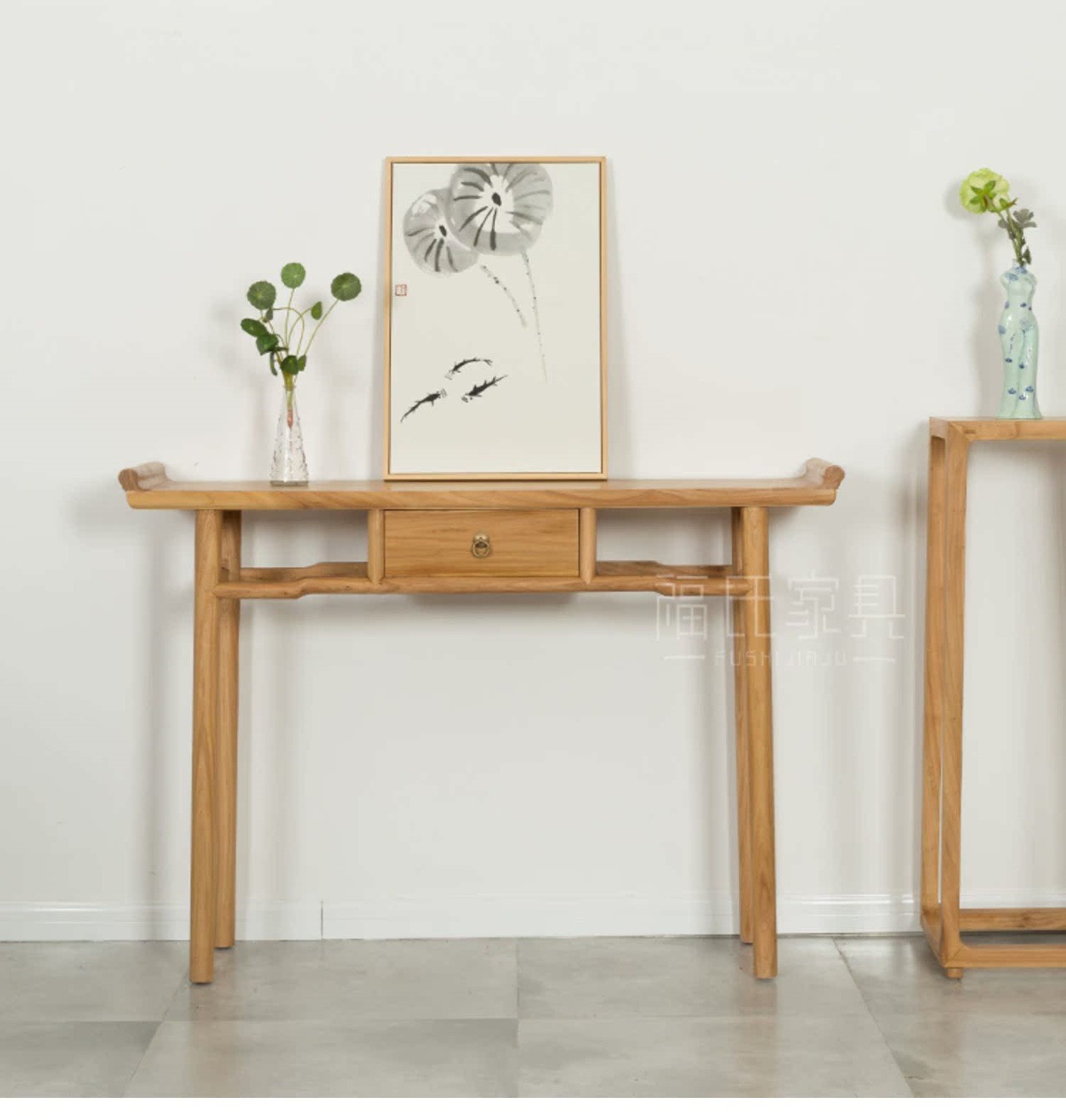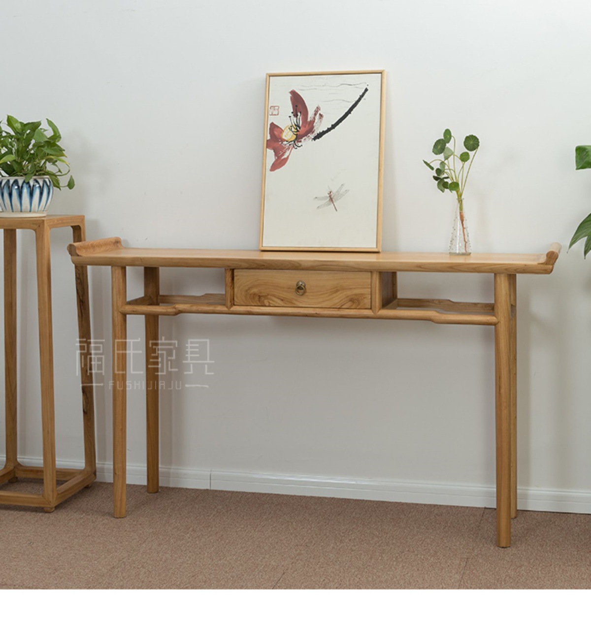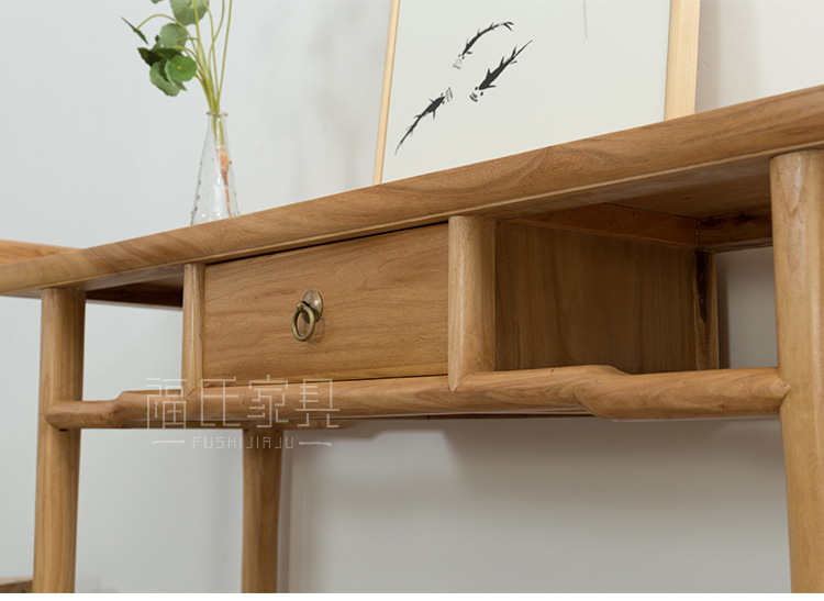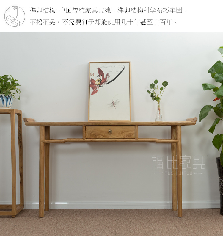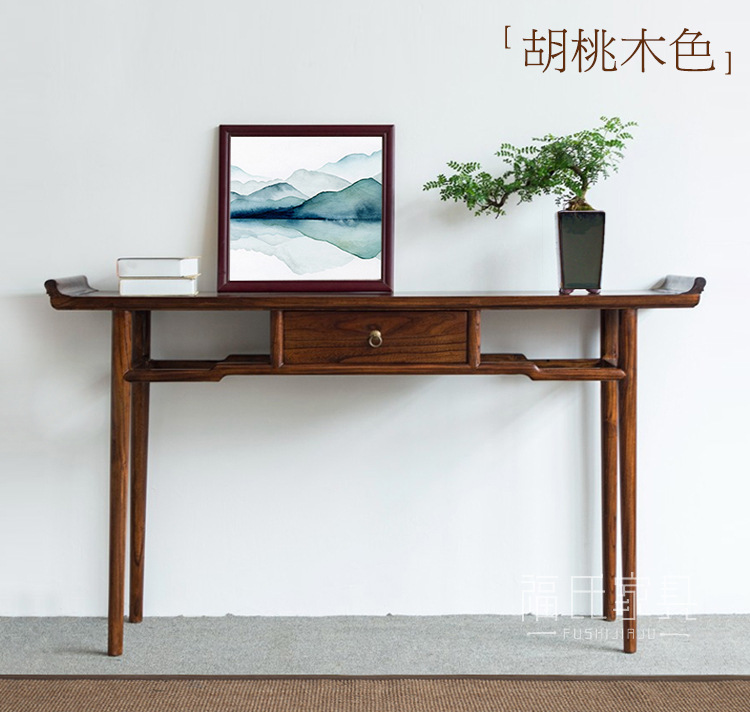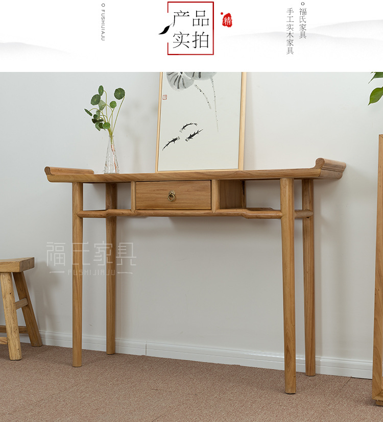新しい中国風無垢材古いニレ材テーブル無塗装テーブルシンプルなログエントリーテーブルブラックウォールナットテーブル