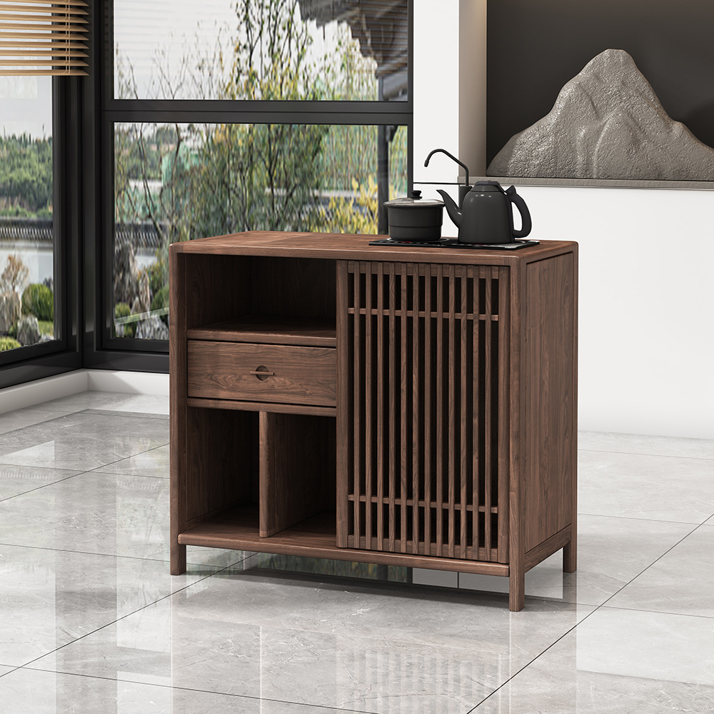 Su Mao 新中国風無垢材ティーキャビネットモダンティーテーブルティーサイドキャビネットホームモバイルリビングルーム小型水沸騰キャビネット