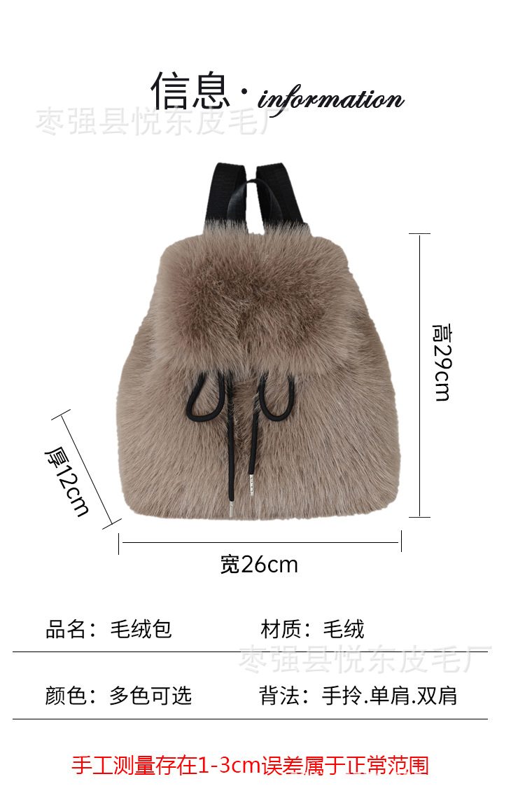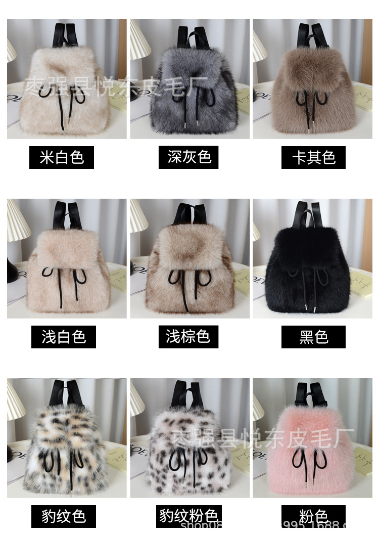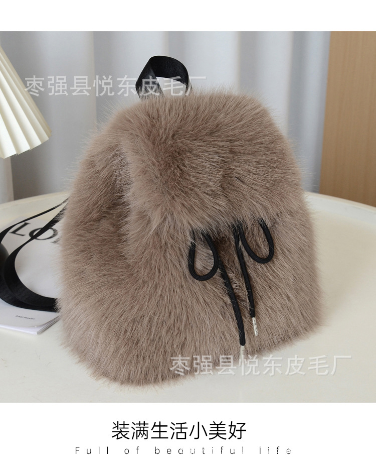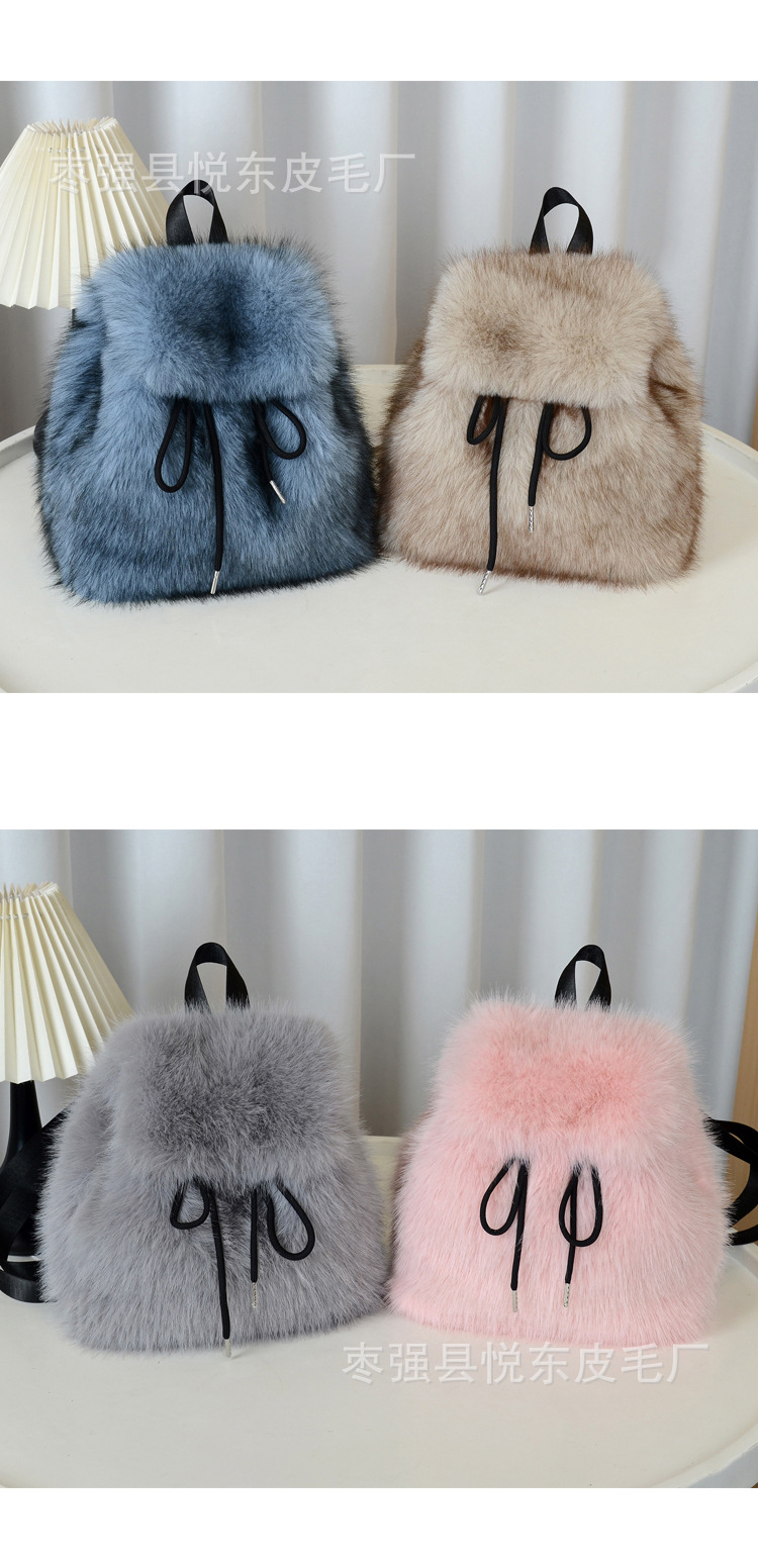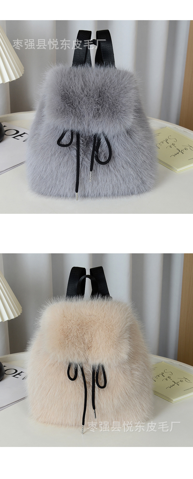2025新款仿狐狸毛双肩包女大学生休闲抽绳翻盖磁扣大容量包包女
