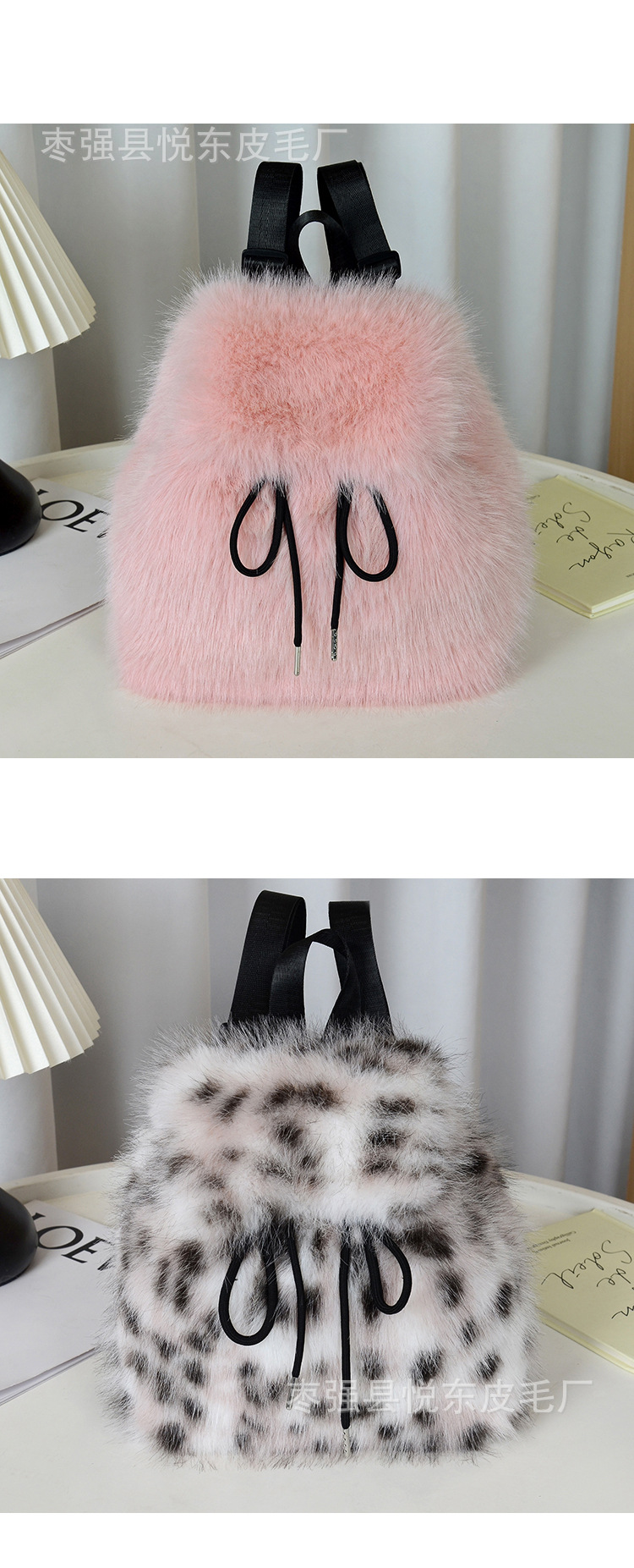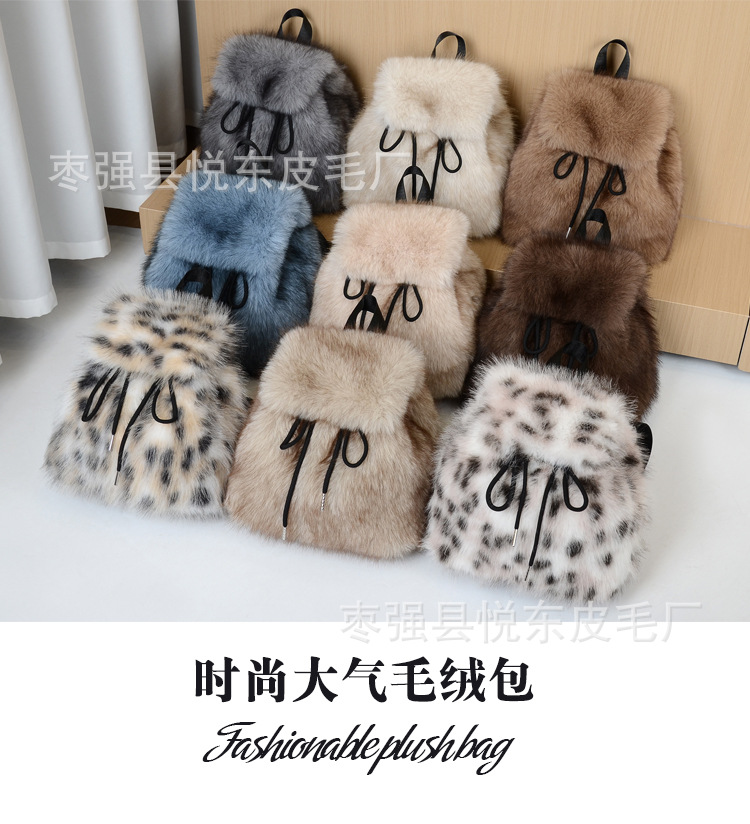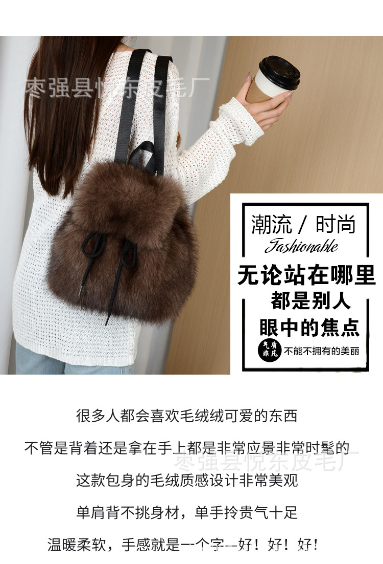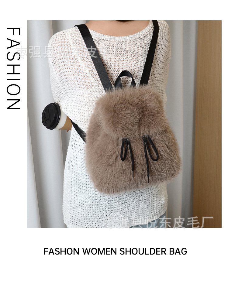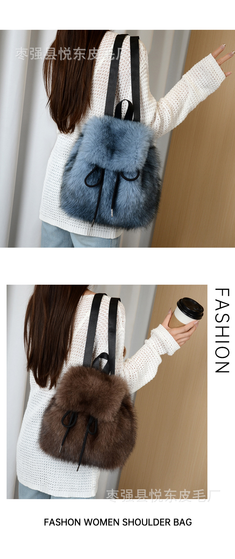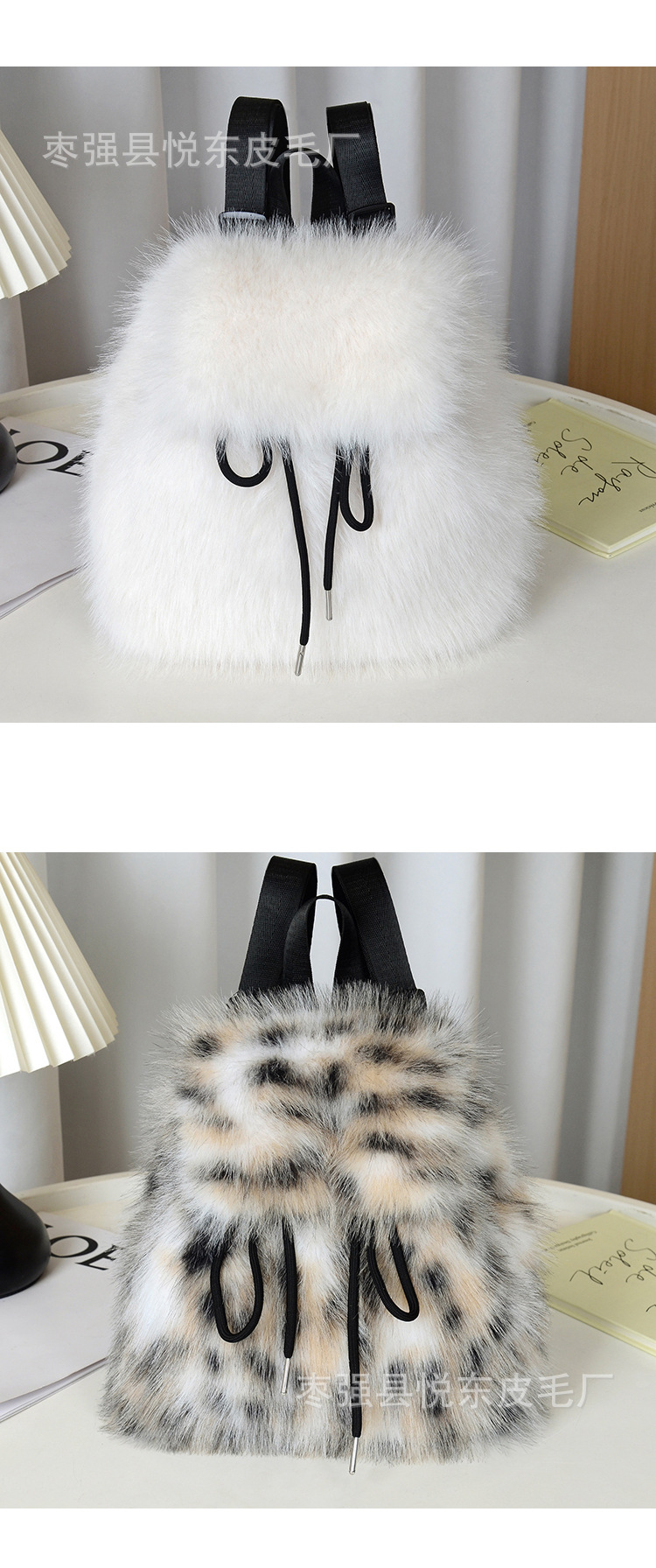 2025新款仿狐狸毛双肩包女大学生休闲抽绳翻盖磁扣大容量包包女