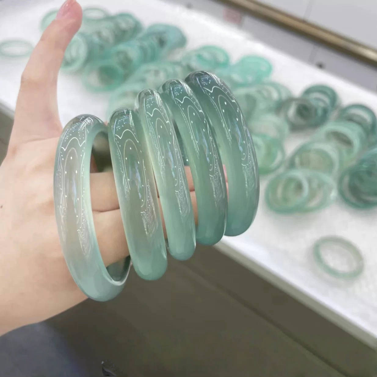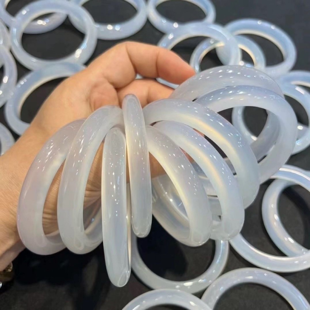 跨境热卖高冰马料天然浅香槟玉髓冰透玛瑙玉镯女镯子冰种白月光荔