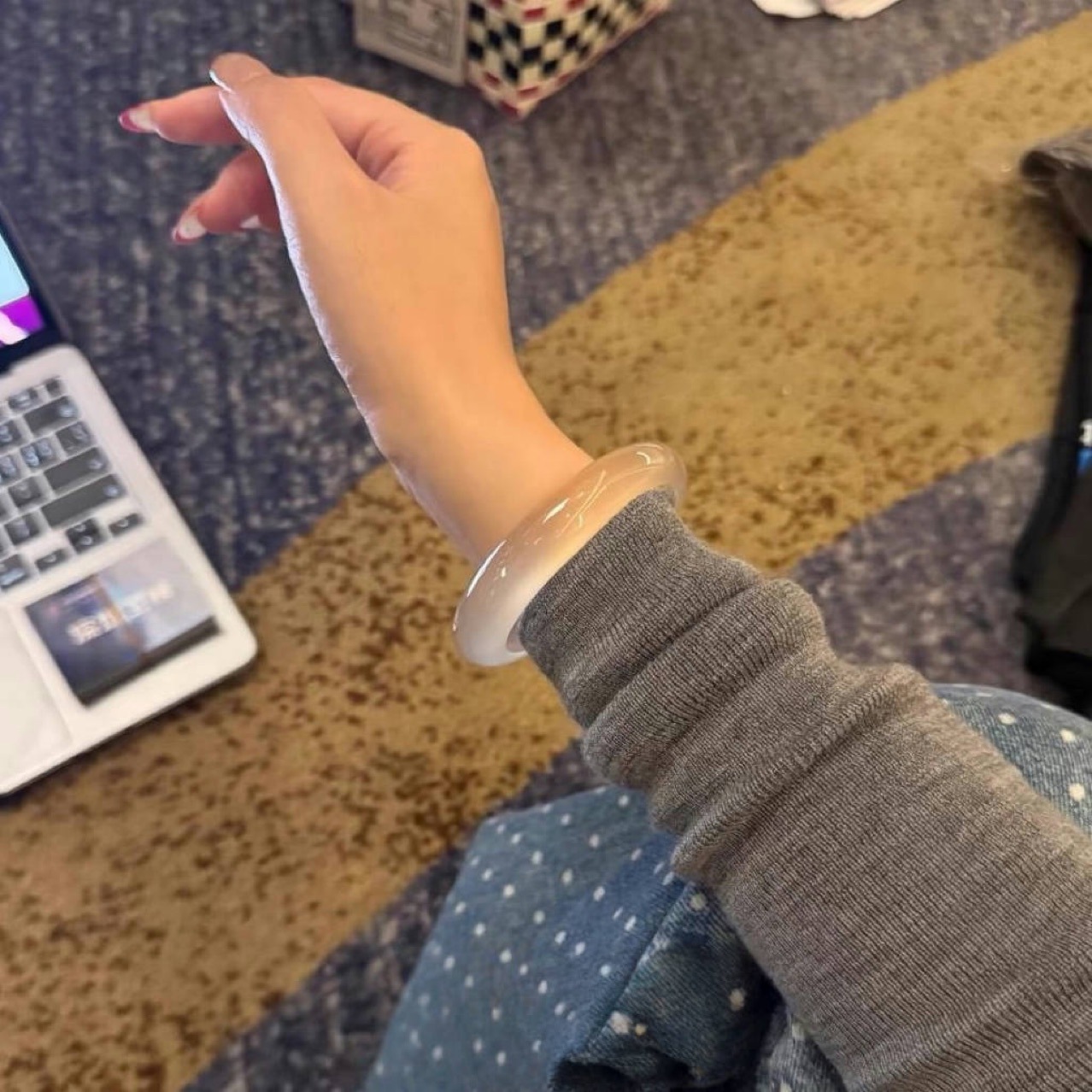 天然氷種 2速ホワイトムーンライト瑪瑙ブレスレット レディース ニッチ氷種 ホワイトアイスブレスレット ライチゼリーカルセドニー
