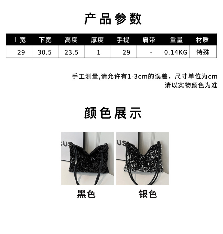2025新款百搭单肩包腋下包包女外出旅行时尚亮片小众设计辣妹包包