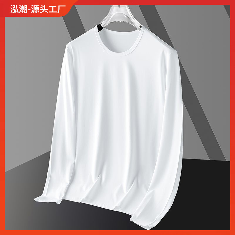 秋の新白長袖 Tシャツメンズ春と秋の新作インナートップ無地ボトムシャツスウェットシャツ秋服